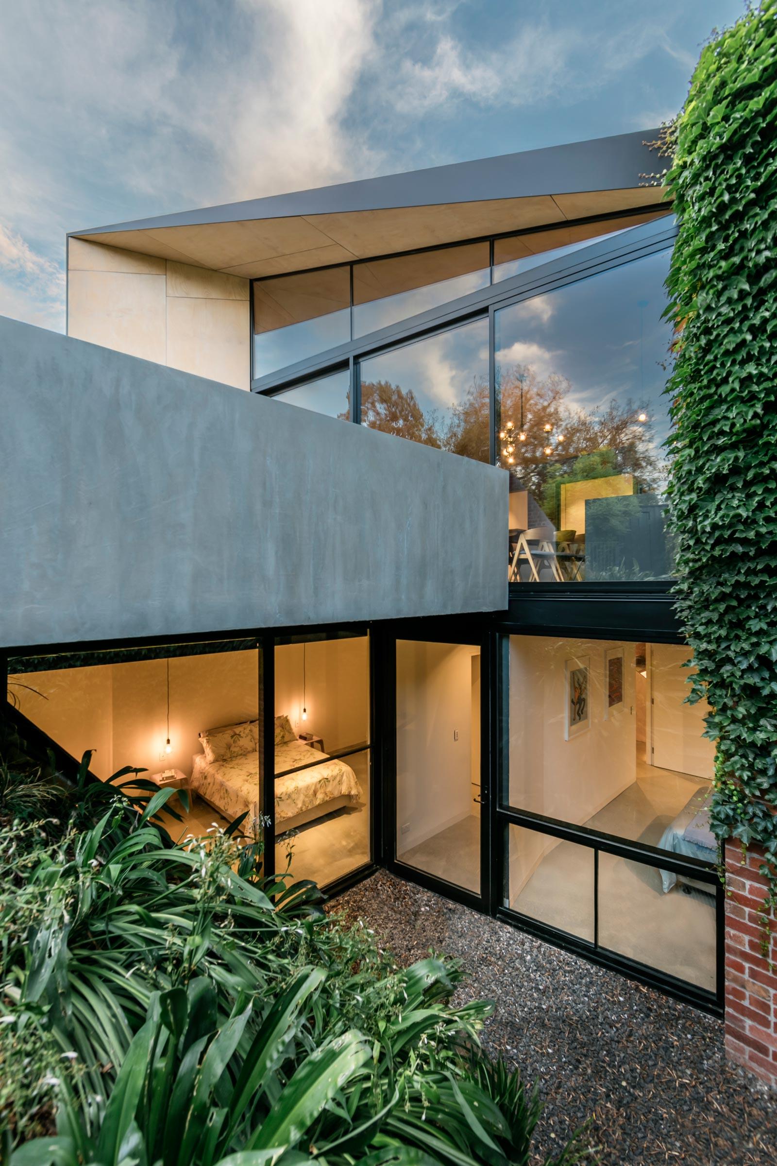 ไอเดียบ้านสไตล์โมเดิร์น มีชั้นใต้ดิน พร้อมสวนแนวตั้ง 01บ้านหลังนี้ ออกแบบโดย Mitsuori ซึ่งเจ้าของบ้านมีความคิดไม่อยากให้มีอะไรมาบดบังสวนหลังบ้าน เพื่อให้ได้ความสวยงามของสวนหลังบ้าน บ้านหลังนี้จึงได้ถูกออกแบบโดยมีพื้นที่ใช้สอยอยู่ที่บนพื้นดิน และชั้นใต้ดินนั่นเอง ชั้นบนเผยให้เห็นตัวบ้านที่มีความโดดเด่นจากหลังคาทรงสโลป ทำให้แสงสามารถสาดส่องเข้ามาในตัวบ้านได้อย่างพอดี