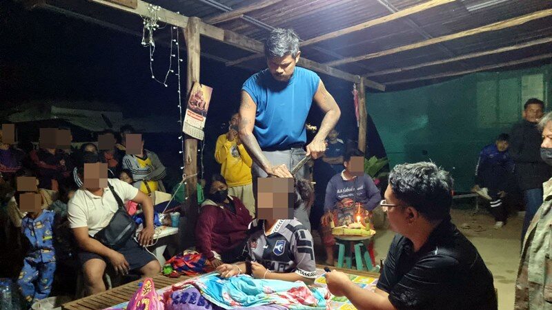 โดยใช้เวลาทำพิธีประมาณ 3 ชั่วโมง ท่ามกลางความเป็นห่วงของครอบครัว และมีญาติพี่น้อง ชาวบ้านที่ทราบข่าวมาดูการทำพิธีด้วย