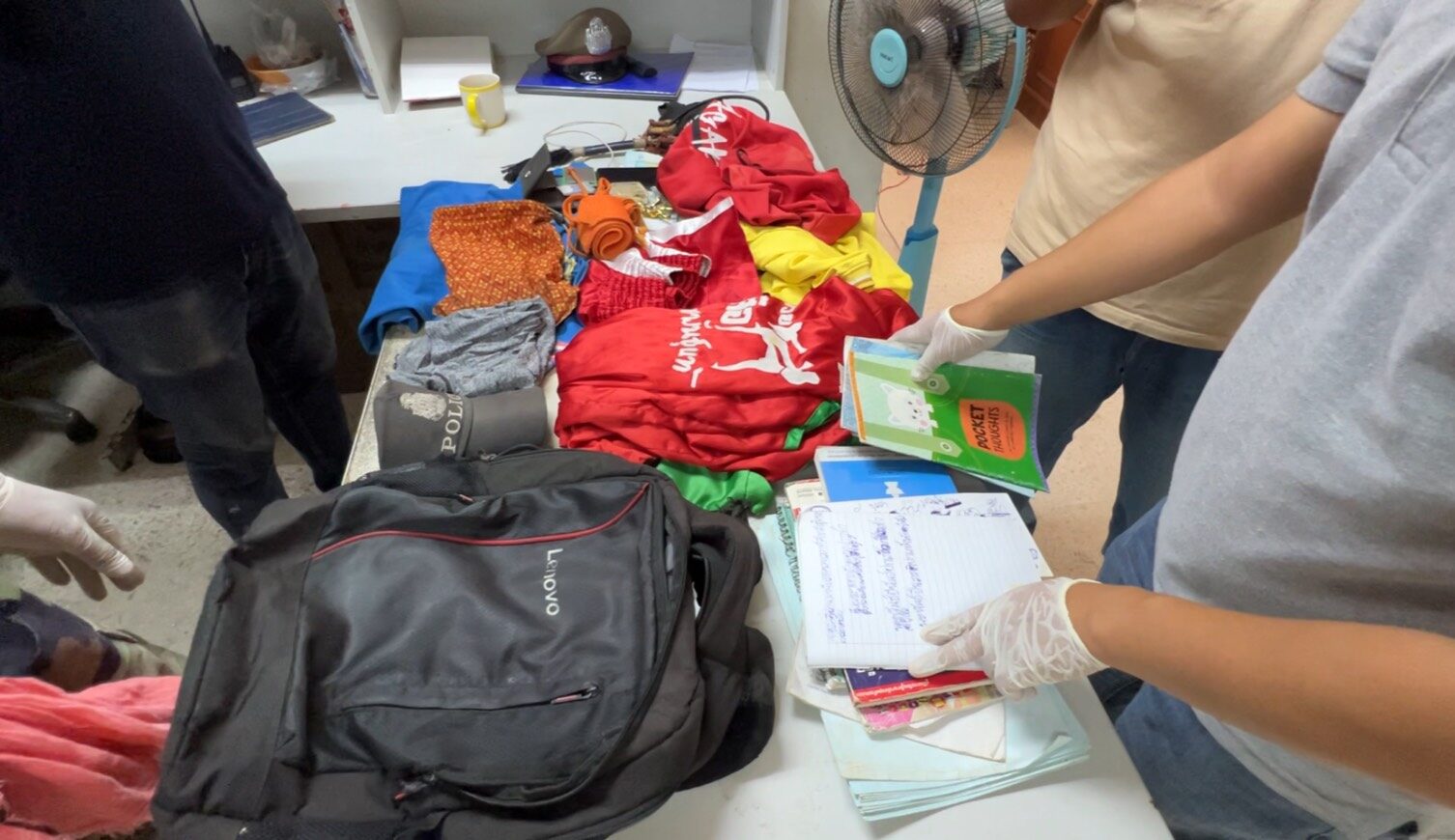 ต่อมาเจ้าหน้าที่ตรวจสอบกระเป๋าสะพายหลังสีดำของผู้ต้องหา พบภายในมีชุดนักมวย มงคลสวมหัวนักมวย สมุดจดคาถา สมุดที่ผู้ต้องหาเขียนและขีดเขียด หนังสือรัฐธรรมนูญ หนังสือไวยากรณ์อังกฤษ พระเครื่อง โทรศัพท์มือถือ กระเป๋าตัง เศษเหรียญ
