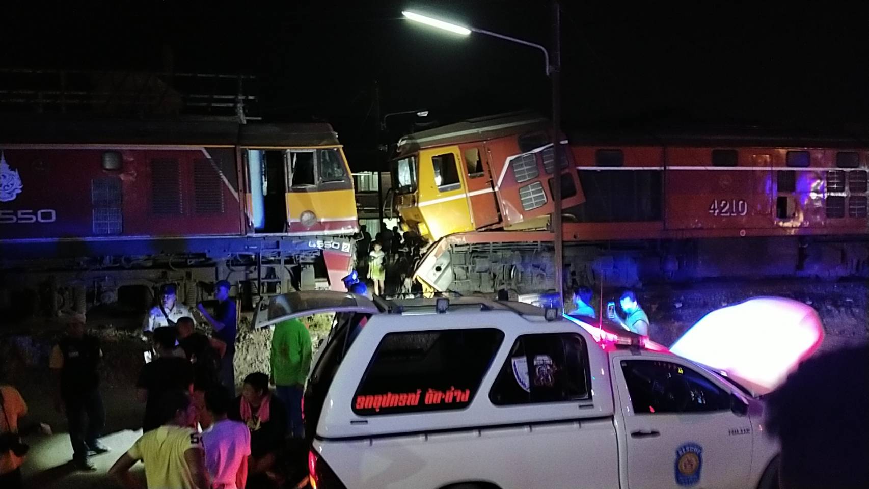 จากการตรวจสอบพบว่า เป็นรถไฟโดยสารวิ่งจากกทม.-หาดใหญ่ ส่วนรถไฟอีกขบวนเป็นรถสินค้าขนตู้คอนเทนเนอร์ จากเหตุการณ์ในครั้งนี้ทำให้มีผู้บาดเจ็บ 7 ราย เป็นผู้โดยสารและคนขับรถไฟ เจ้าหน้าที่ได้นำตัวส่งโรงพยาบาลแล้ว โดยมีอาการสาหัส 1 รายเป็นคนขับรถไฟ