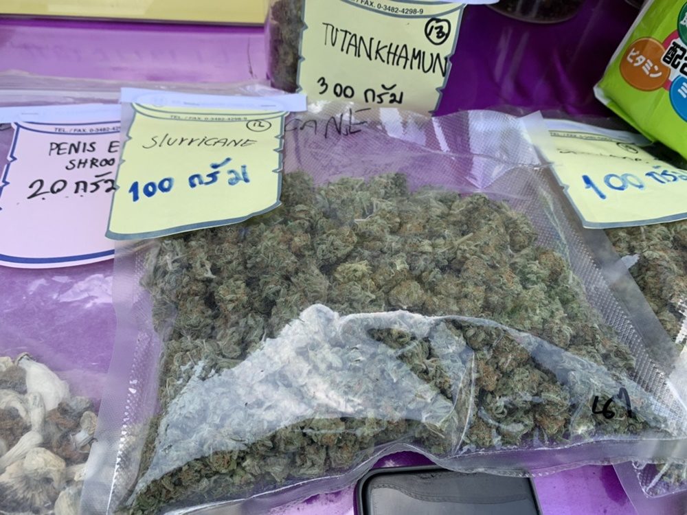 จากนั้นยินยอมให้พาไปตรวจค้นยังห้องพักภายในคอนโดมิเนียมชั้น 6 เมื่อไปถึงพบผู้ต้องหาเป็นผู้หญิงอีก 2 คน อยู่ภายในห้องดังกล่าว และตรวจค้นพบของกลางดอกกัญชาสายพันธุ์ต่างประเทศรวม 13 สายพันธุ์ ซึ่งบรรจุอยู่ในภาชนะแบบต่างๆ รวม 46 รายการ ทั้งในรูปแบบของการแปรรูปชนิดต่างๆ เช่น รูปแบบของช็อคโกแลต คุกกี้ แพนเค้ก เยลลี่ เพื่อให้เข้าถึงวัยรุ่น หรือเยาวชน น้ำหนักรวมภาชนะ 10.01 กก. และเห็ดเมา 3 รายการ น้ำหนักรวม 60 กรัม
