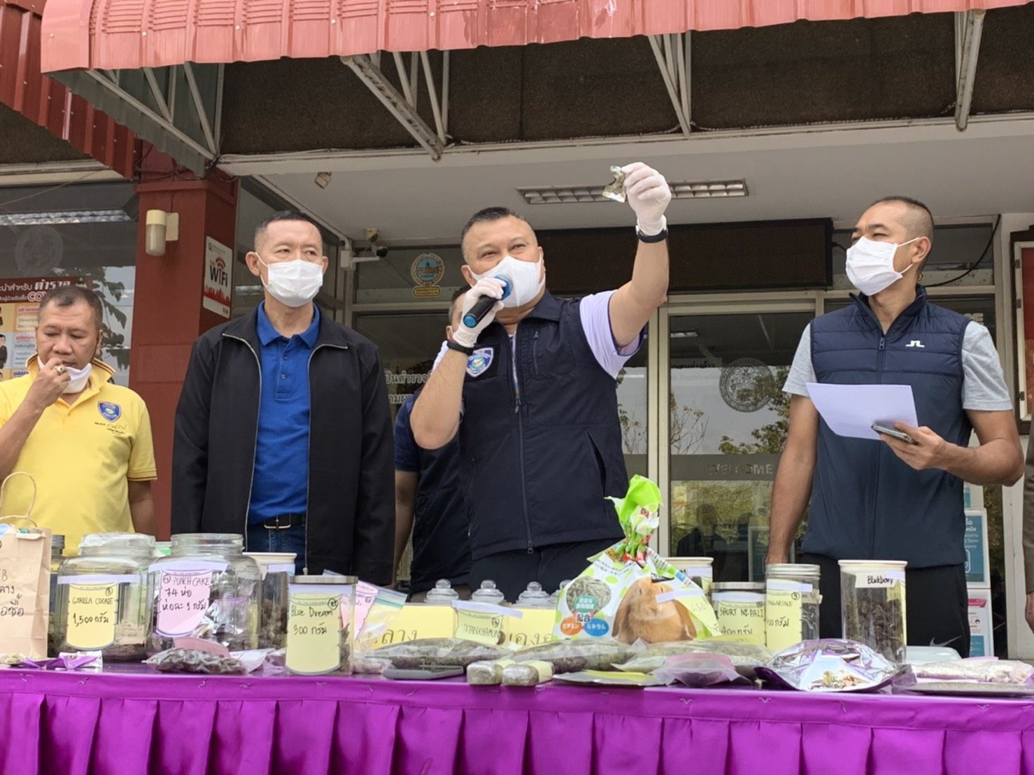 ร่วมแถลงจับกุม น.ส.ประภาวรินทร์ มากมูล อายุ 24 ปี น.ส.ณภัสส์สา อายุ 22 ปี นายภัทรนิศวร์ อายุ 19 ปี พร้อมของกลางดอกกัญชาสด และแปรรูปรวม 10 กิโลกรัม เห็ดเมา 60 กรัม รวมมูลค่ากว่า 1 ล้านบาท โดยจับกุมได้ที่คอนโดมิเนียมแห่งหนึ่ง ในซอยลาซาล 52 แขวงและเขตบางนา กทม.