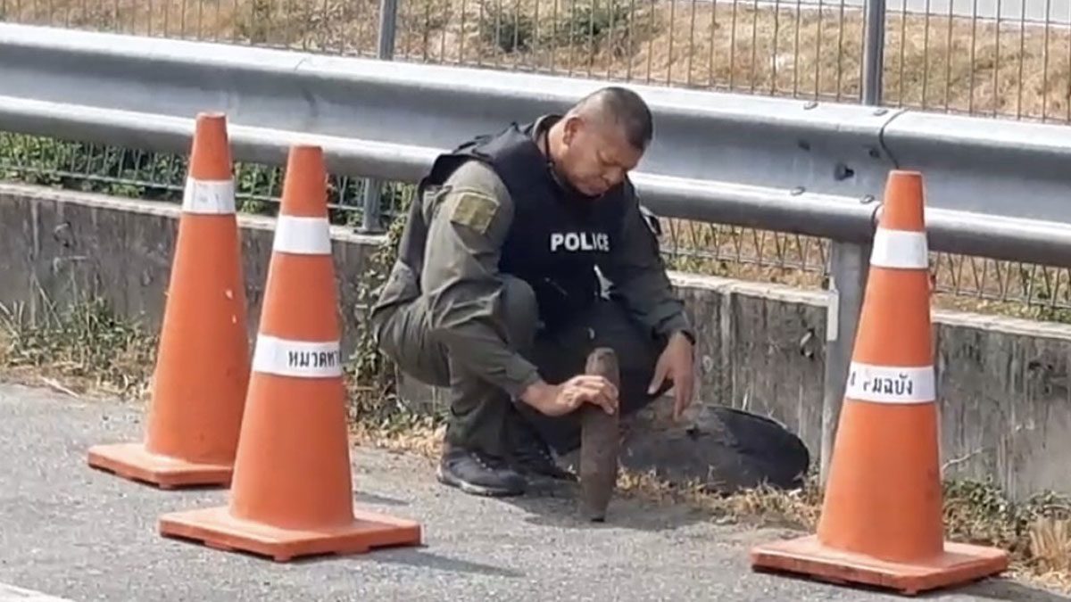 พบกระสุนระเบิด ทำลายล้างสูง ระยะ 30 เมตร อาจบึ้มได้ทุกเมื่อ ริมถนนมอเตอร์เวย์