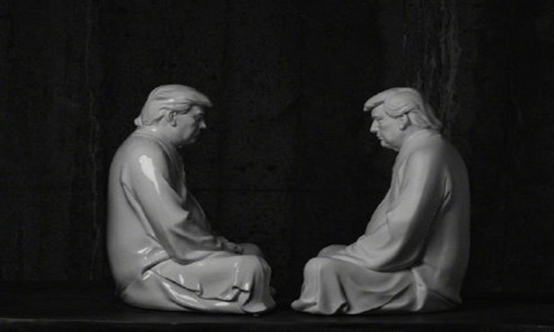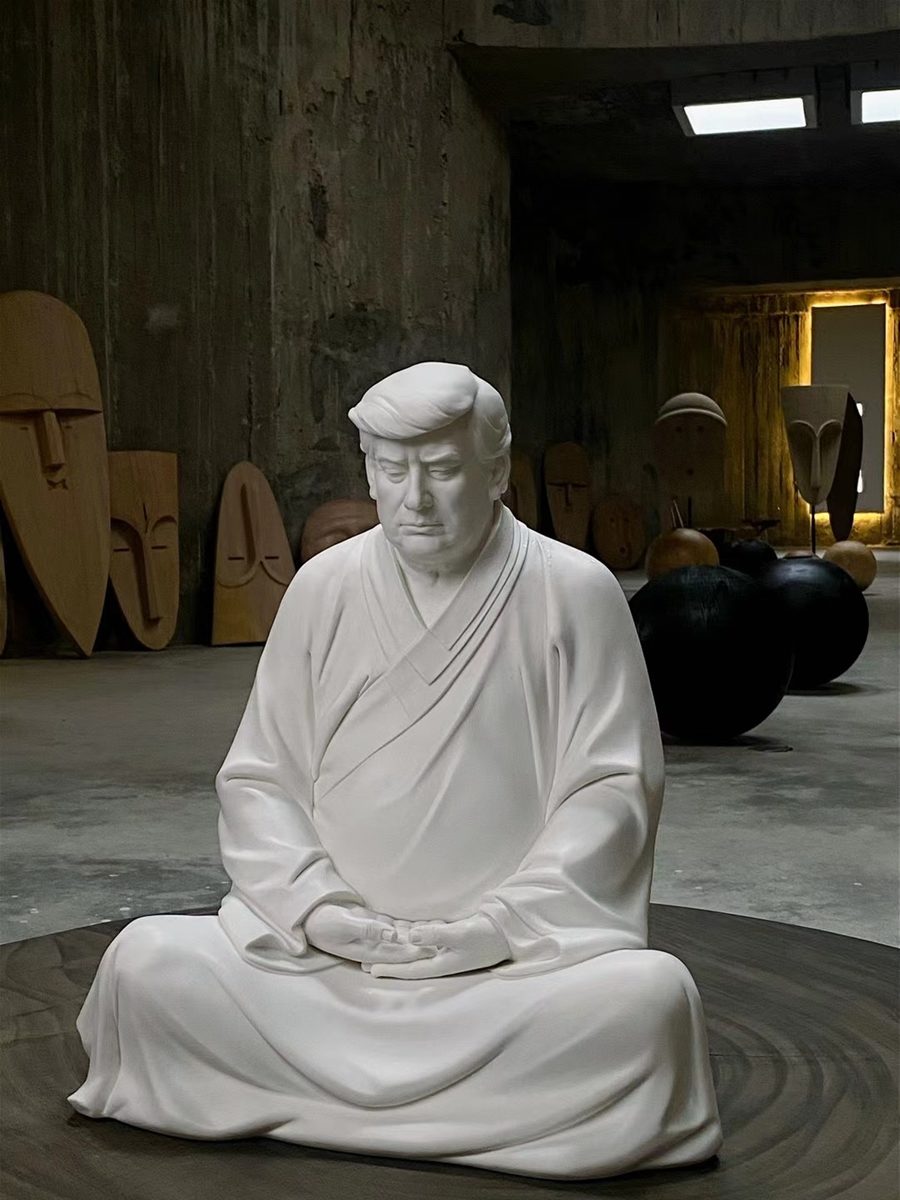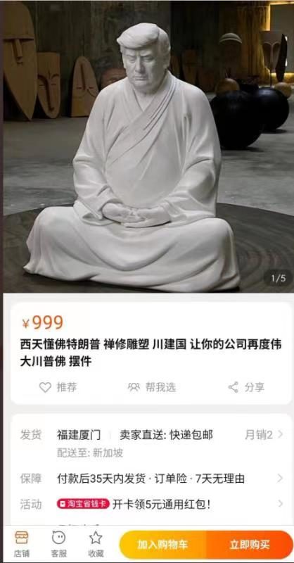 บริษัทเฟอร์นิเจอร์แห่งหนึ่งในเมือง เซี่ยเหมิน ประเทศจีน ได้ปิ๊งไอเดียปั้นรูปนายโดนัลด์ ทรัมป์ รูปปั้นดังกล่าวทำมาจากเครื่องคลือบสีขาว และนุ่งจีวรและนั่งในท่าทำสมาธิแถมมีใบหน้าครุ่นคิดที่ดูคล้ายกับพระพุทธเจ้า รูปปั้นดังกล่าวถูกขายในเว็บขายของออนไลน์โดยมีสโลแกนขายว่า "มาทำบริษัทของคุณให้ดีขึ้นอีกครั้งกันเถอะ" สอดคล้องกับสโลแกนของทรัมป์ที่ว่า"Make American Great Again"