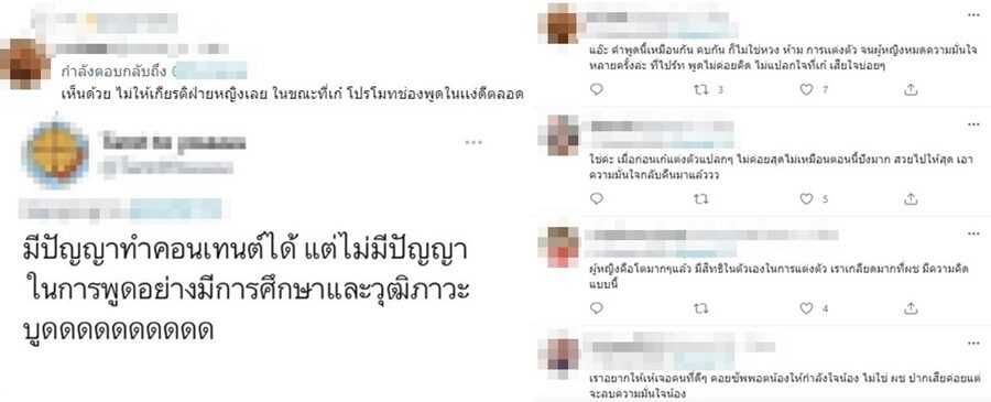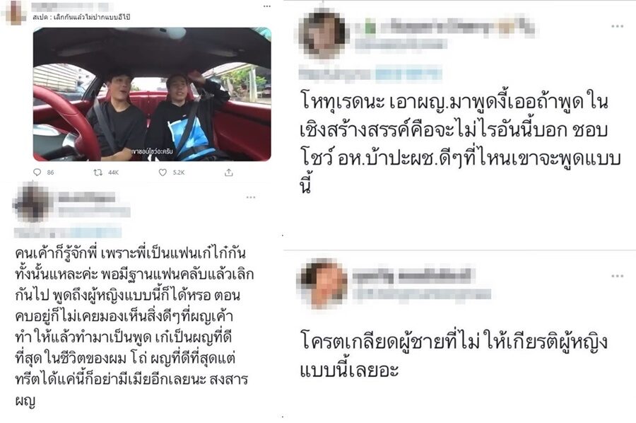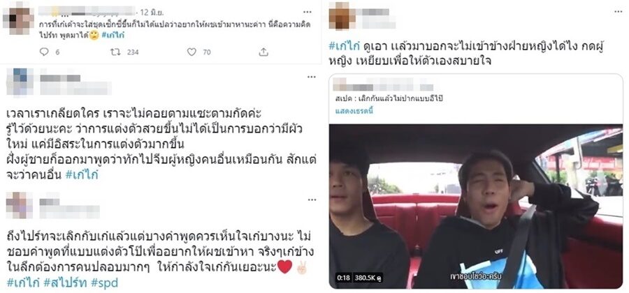 คำพูดดังกล่าวกลายเป็นประเด็นสร้างความไม่พอใจให้กับชาวเน็ตว่า สไปรท์พูดจาไม่ให้เกียรติอดีตแฟนสาว อาทิ สเปค : เลิกกันแล้วไม่ปากแบบอีไป๊ , ดูเอา เเล้วมาบอกจะไม่เข้าข้างฝ่ายหญิงได้ไง กดผู้หญิง เหยียบเพื่อให้ตัวเองสบายใจ , ถึงไปร์ทจะเลิกกับเก๋แล้วแต่บางคำพูดควรเห็นใจเก๋บางนะ ไม่ชอบคำพูดที่แบบแต่งตัวโป๊เพื่ออยากให้ผชเข้าหา จริงๆเก๋ข้างในลึกต้องการคนปลอบมากๆ ให้กำลังใจเก๋กันเยอะนะ เป็นต้น