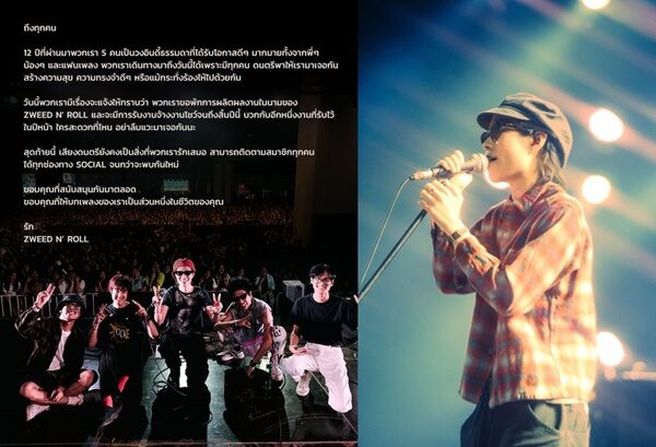 อ่านข่าวต้นฉบับได้ที่ : Zweed n' Roll ประกาศพักวง หลังเดินทางสายดนตรีมา 12 ปี