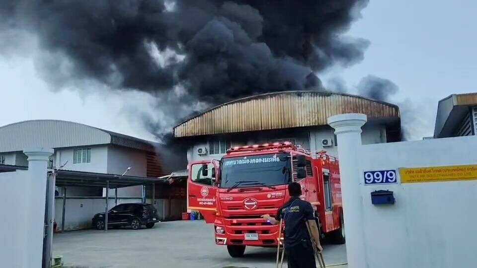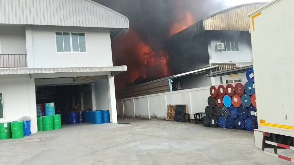 ระทึกกระทุ่มแบน ไฟไหม้โรงงานผลิตสี ระดมระดับเพลิง 10 คัน ฉีดน้ำสกัด