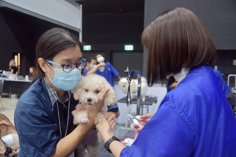 บางรายนำสัตว์เลี้ยงเข้ารับบริการตรวจสุขภาพ ซึ่งให้บริการครบครัน ตั้งแต่ฉีดวัคซีนป้องกันโรคพิษสุนัขบ้า ฝังไมโครชิป ไปจนถึงบริการคลีนนิ่ง เพื่อสุขภาพที่ดี จากโรงเรียนฝึกอาชีพกรุงเทพมหานคร (ดินแดง 1) ภายใต้สำนักพัฒนาสังคม กรุงเทพมหานคร มาร่วมดูแลให้บริการกรูมมิ่งสัตว์เลี้ยง ไม่ว่าจะเป็นเช็ดหู ตัดขนอุ้งเท้า ตัดขนก้น ตัดเล็บ และทำสีแฟนซี โดยทั้งหมดฟรีตลอดทั้งงาน