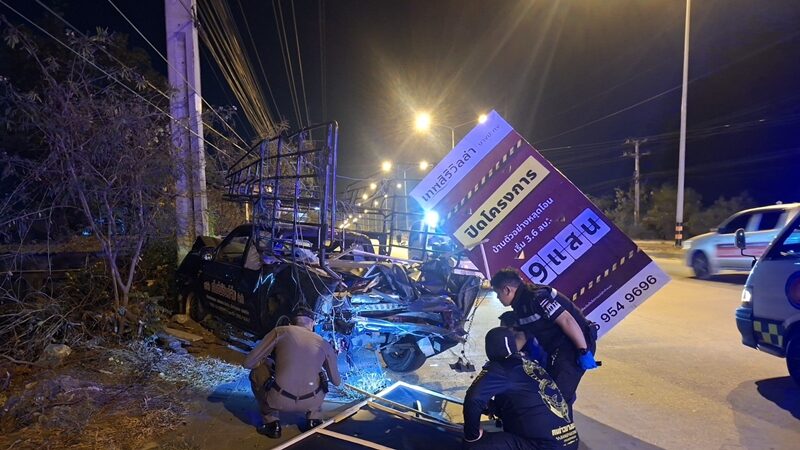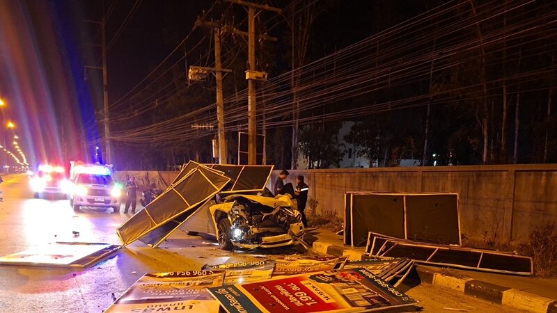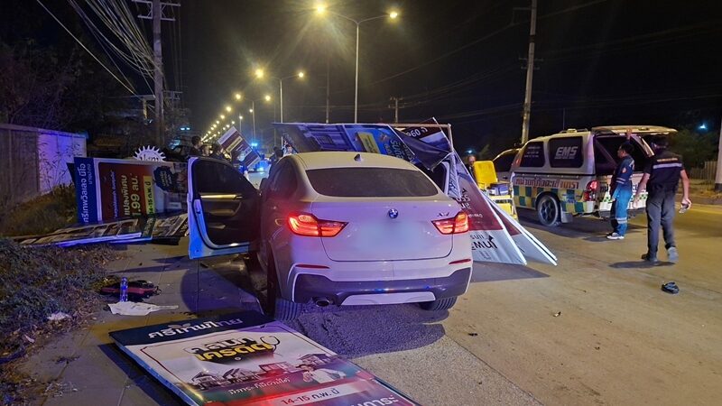 BMW พุ่งเสยท้ายกระบะ หนุ่มยืนติดป้ายข้างทาง ถูกอัดก็อปปี้ร่างขาดเสียชีวิต รถพังเสียหายยับเยิน เผย คู่กรณีคล้ายคนเมา ด้าน เพื่อนผู้เสียชีวิตเล่านาทีสลด