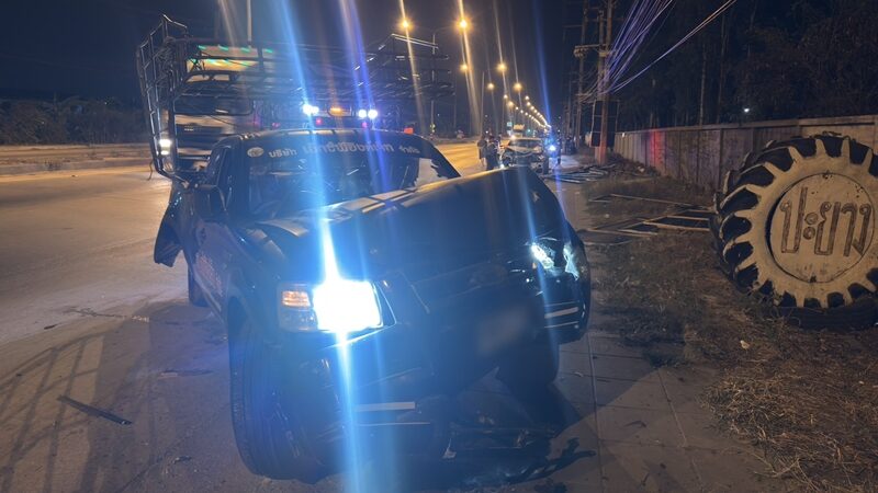 เมื่อเวลา 02.00 น. วันที่ 6 ก.พ.2569 ร.ต.ท.ธนานันต์ สุนทรา สารวัตร(สอบสวน) สภ.บางปะกง รับแจ้งเหตุรถยนต์เฉี่ยวชนกับรถกระบะ บริเวณหน้าบริษัทแห่งหนึ่ง ถนนสุขุมวิทสายเก่ามุ่งหน้าคลองด่าน ต.บางปะกง อ.บางปะกง จ.ฉะเชิงเทรา จึงรุดไปตรวจสอบพร้อมหน่วยกู้ภัยฉะเชิงเทรา