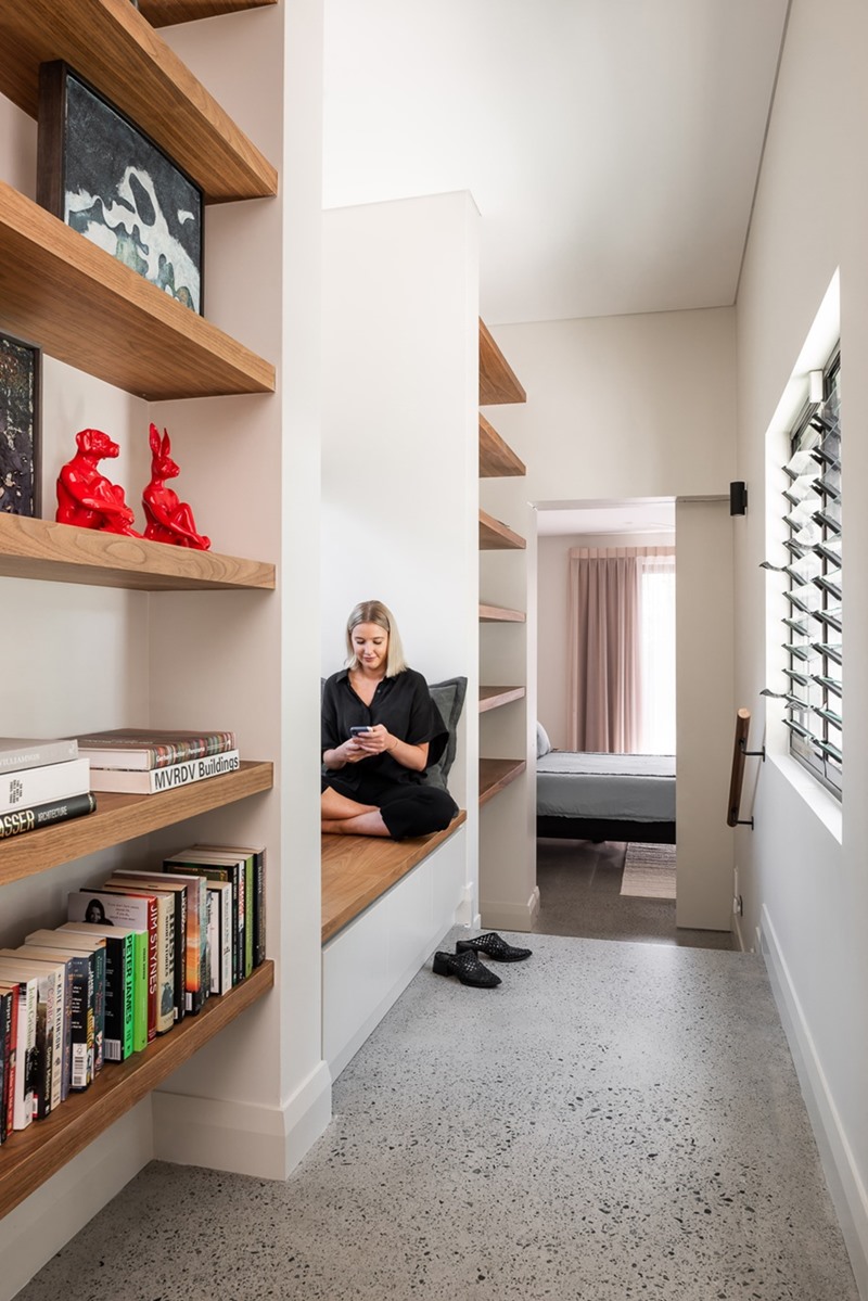 ไอเดียแต่งบ้านหลังนี้ออกแบบโดย Robeson Architects จากประเทศออสเตรเลีย ซึ่งได้ออกแบบสไตล์คอตเทจเปรียบเหมือนบ้านพักตากอากาศ แต่อยู่ในใจกลางเมือง โดยบานประตูเป็นช่องหน้าต่างติดบานเกล็ดช่วยระบายอากาศ ที่สูงจากพื้นจรดเพดาน ซึ่งเป็นอีกหนึ่งเอกลัษณ์ของบ้านในออสเตรเลียที่มักจะได้เห็นกันบ่อยๆครับ