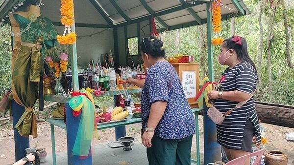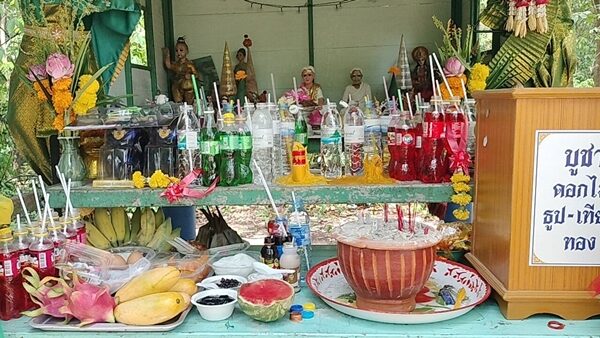 ป้าหมวย กล่าวต่อว่า ปรากฏหวยออกเลขท้าย 2 ตัวคือ 09 พวกตนจึงได้โชค ถึงจะยังไม่มาก แต่ก็มาอีก โดยวันนี้นำขนมจีนน้ำยา ขนม ผลไม้ และของเซ่นไหว้อีกหลายอย่างมาถวายให้กับตายาย ที่ศาลตายายแห่งนี้ และก็จุดธูปเสี่ยงทาย ขอโชคอีกงวด ในงวดวันที่ 16 มิ.ย.2566 ได้เลข 772