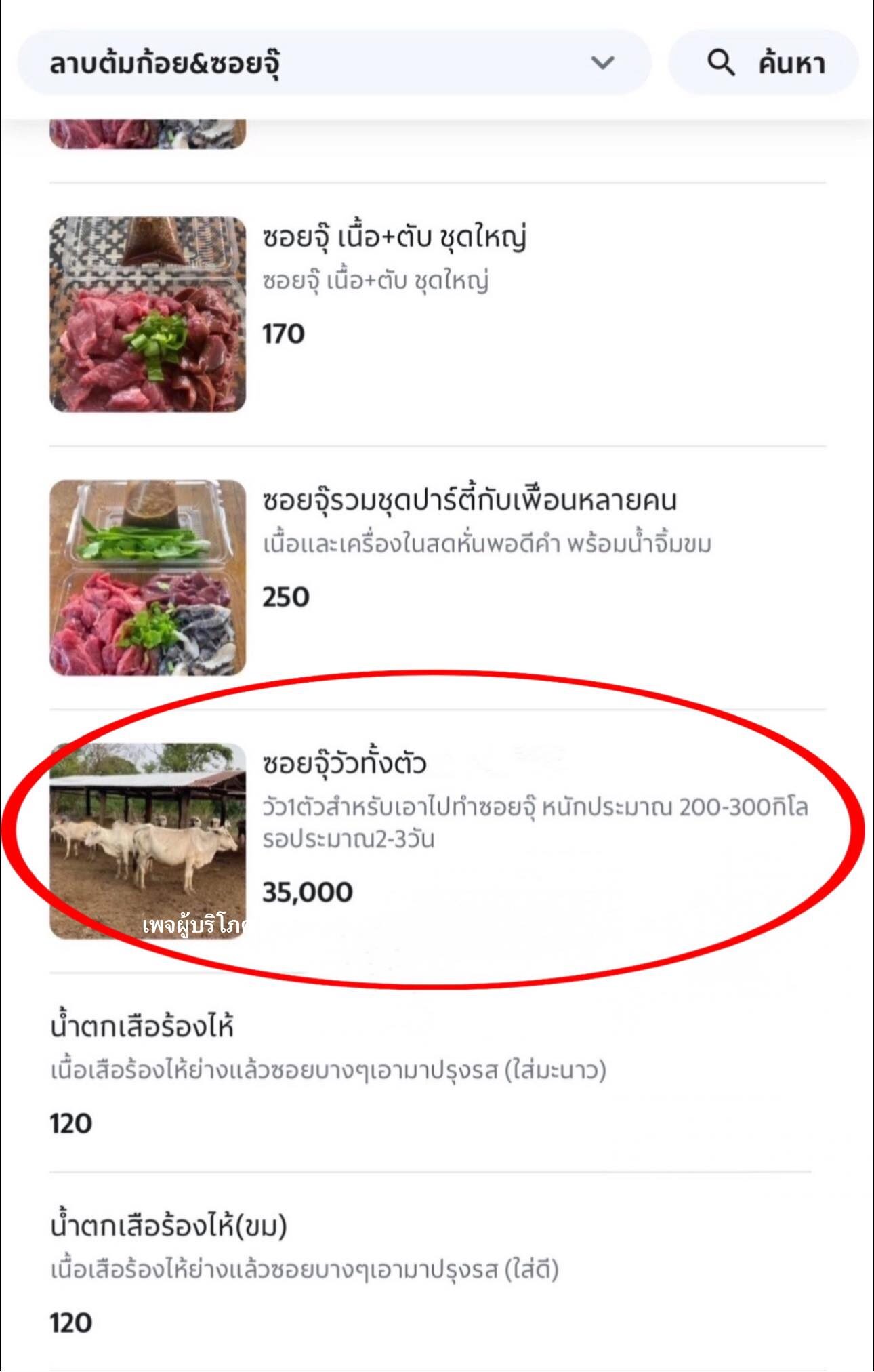 สงสารไรเดอร์เลย เมื่อร้านใส่เมนู ซอยจุ๊วัวทั้งตัว ราคา 35,000 บาท คนแห่คอมเมนต์แซวร้าน น้ำจิ้มต้องขนาดกี่ลิตร
