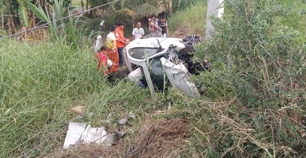 จากการตรวจสอบเบื้องต้น คาดว่าคนขับรถน่าจะหลับในหรือขับรถมาด้วยความเร็ว จนเมื่อมาถึงทางโค้งแล้วควบคุมรถไม่อยู่ จึงทำให้เสียหลักหลุดโค้งไปพุ่งชนเสาไฟฟ้าข้างทาง