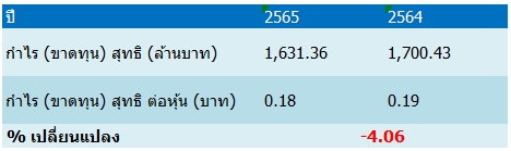 พร้อมกันนี้บริษัทมีมติจ่ายปันผลจากงวดดำเนินงานวันที่ 1 ต.ค.65 – 31 ธ.ค.65 เป็นเงินสด 0.011 บาทต่อหุ้น กำหนดวันที่ไม่ได้รับสิทธิปันผล (XD) วันที่ 4 เม.ย.66 และกำหนดจ่ายปันผล 27 เม.ย.66