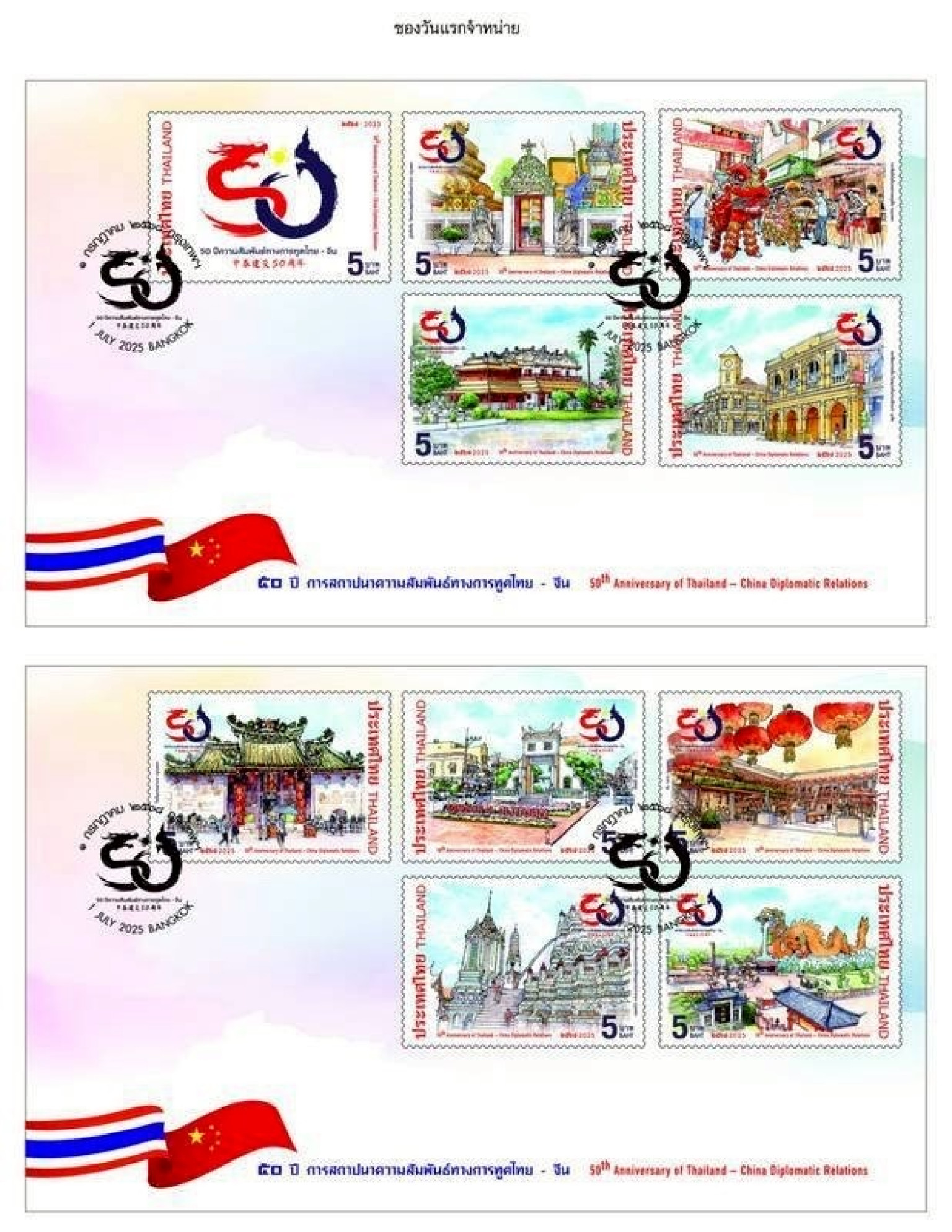 ไปรษณีย์ไทยได้ทำหน้าที่เป็นทูตวัฒนธรรม จัดสร้างแสตมป์ที่ระลึกบันทึกประวัติศาสตร์ และสะท้อนมิตรภาพระหว่างไทย–จีนอย่างลึกซึ้ง โดยเฉพาะในวาระครบรอบ 50 ปี แห่งการสถาปนาความสัมพันธ์ทางการทูต ได้จัดทำแสตมป์ชุดพิเศษ “50 ปี ไทย–จีน” ที่ผสานพญานาคของไทยและมังกร ของจีนเป็นเลข 50 พร้อมภาพจำสำคัญ เช่น การเชิดสิงโต พระที่นั่งเวหาศน์จำรูญ และอาคารสถาปัตยกรรมจีน-โปรตุเกสในภูเก็ต ที่สื่อถึงความสัมพันธ์ทางวัฒนธรรมที่หยั่งรากลึกและต่อเนื่อง แสตมป์ชุดนี้จึงเป็นมากกว่าสิ่งสะสม แต่คือสื่อกลางของ Soft Power ที่ใช้ “ภาพหนึ่งภาพ” สื่อสารประวัติศาสตร์และมิตรภาพข้ามพรมแดน ทั้งยังต่อยอดจากแสตมป์ชุดครบรอบ 20 ปี ไทย–จีน ที่บันทึกหมุดหมายสำคัญของสายสัมพันธ์ระหว่างประเทศ และได้ยืนยันบทบาทไปรษณีย์ไทยในฐานะผู้ถ่ายทอดเรื่องราวระหว่างสองอารยธรรมผ่านศิลป์บนแสตมป์อย่างต่อเนื่อง