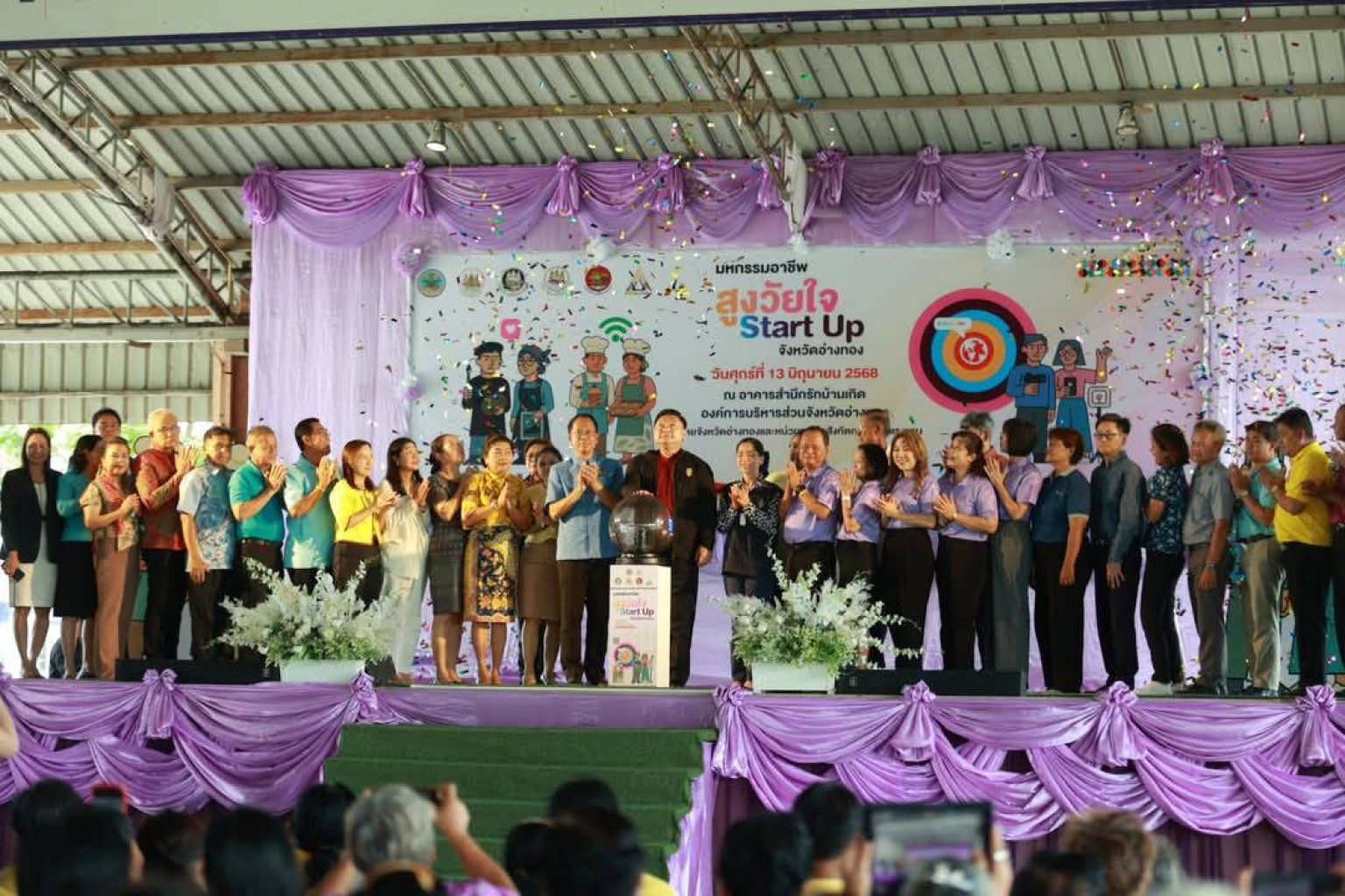 วันที่ 13 มิ.ย.68 ณ อาคารสำนึกรักบ้านเกิด องค์การบริหารส่วนจังหวัดอ่างทอง นายชวนินทร์ วงศ์สถิตจิรกาล ผู้ว่าราชการจังหวัดอ่างทอง เป็นประธานในพิธีเปิดงาน "มหกรรมอาชีพสูงวัยใจ START UP" จังหวัดอ่างทอง โดยมีนายสมศักดิ์ ปริศนานันทกุล อดีตรัฐมนตรีว่าการกระทรวงเกษตรสหกรณ์ นายภราดร ปริศนานันทกุล รองประธานสภาผู้แทนราษฎรคนที่ 2 นายกวีร์ ปริศนานันทกุล สมาชิกสภาผู้แทนราษฎรจังหวัดอ่างทอง รองผู้ว่าราชการจังหวัดอ่างทอง นายกเหล่ากาชาดจังหวัดอ่างทอง ปลัดจังหวัดอ่างทอง หัวหน้าส่วนราชการจังหวัดอ่างทอง นายอำเภอ องค์กรภาคประชาชน และผู้ร่วมกิจกรรมมี นางสาววนิดา เงินรูปงาม แรงงานจังหวัดอ่างทอง กล่าวรายงานวัตถุประสงค์การจัดงาน
