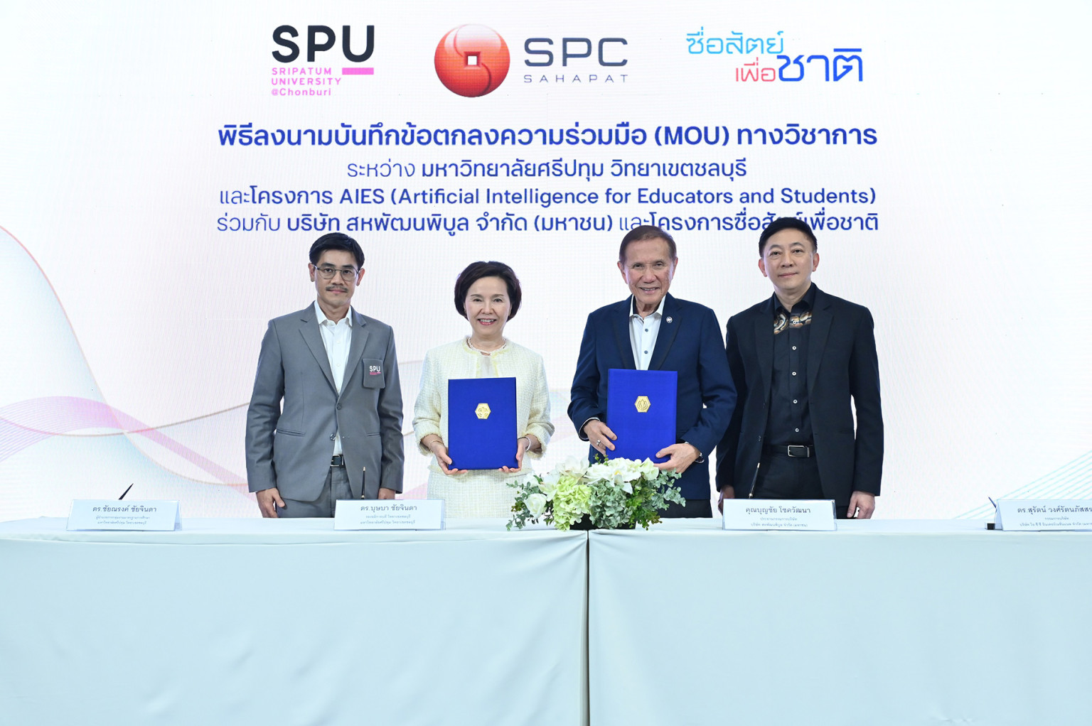 มหาวิทยาลัยศรีปทุม วิทยาเขตชลบุรี จับมือ บริษัท สหพัฒนพิบูล จำกัด (มหาชน) และโครงการซื่อสัตย์เพื่อชาติ ลงนามบันทึกข้อตกลงความร่วมมือทางวิชาการ ส่งเสริมให้ครูและอาจารย์ ได้รับความรู้และทักษะในการนำเทคโนโลยี AI ซึ่งเป็นเครื่องมือสำคัญในการพัฒนาประเทศ ยกระดับการเรียนการสอนแก่เยาวชนไทยเพื่อยกระดับการศึกษาไทยให้เท่าทันโลกดิจิทัล พร้อมสอดแทรกแนวคิดเรื่องความซื่อสัตย์ในการอบรม