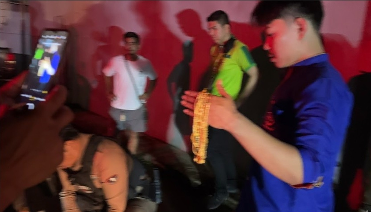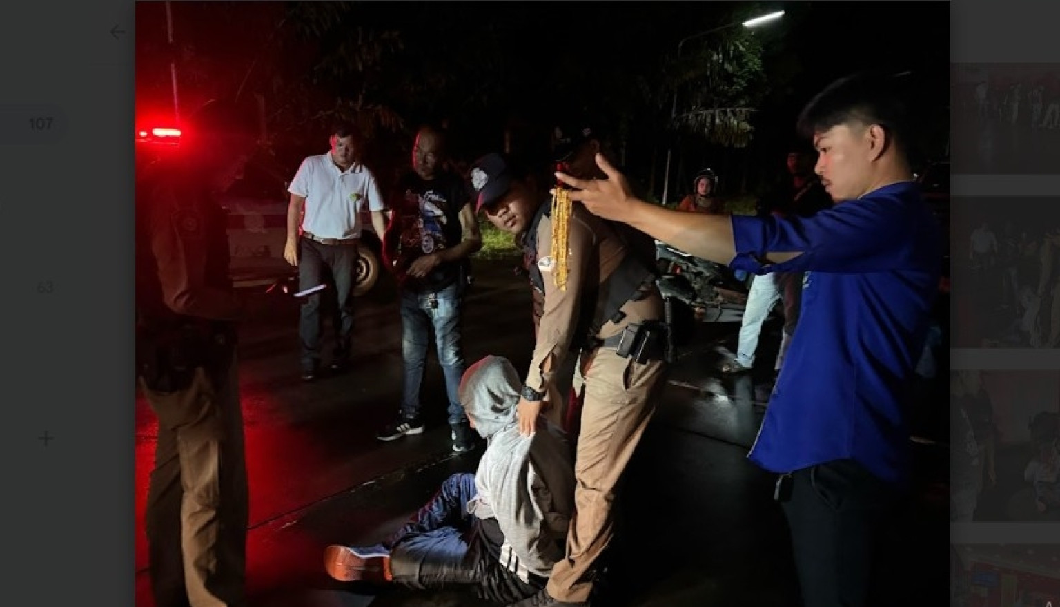 ผู้สื่อข่าวรายงานเพิ่มเติมว่าหลังรับแจ้งเหตุ ได้ขับรถยนต์ติดตามรถยนต์สายตรวจ 191 ตามเข้าไปยังห้างที่เกิดเหตุ จนกระทั่งถึงบริเวณด้านข้างของห้างดังกล่าว ห่างจากร้านทองจุดเกิดเหตุประมาณ 90 เมตร พนักงานร้านทองและพนักงานห้างดังสาขาระนอง รวม 3 คน และกำลังเจ้าหน้าที่ตำรวจ สภ.เมืองระนอง ได้ทำการควบคุมคนร้ายไว้เป็นที่เรียบร้อย ก่อนนำตัวขึ้นนั่งและสวมกุญแจมือไว้ด้านหลัง โดยทองที่ติดตัวมากับคนร้ายมีจำนวน 8 เส้น น้ำหนัก 8 บาท รวมมูลค่าร่วม 500,000 บาท