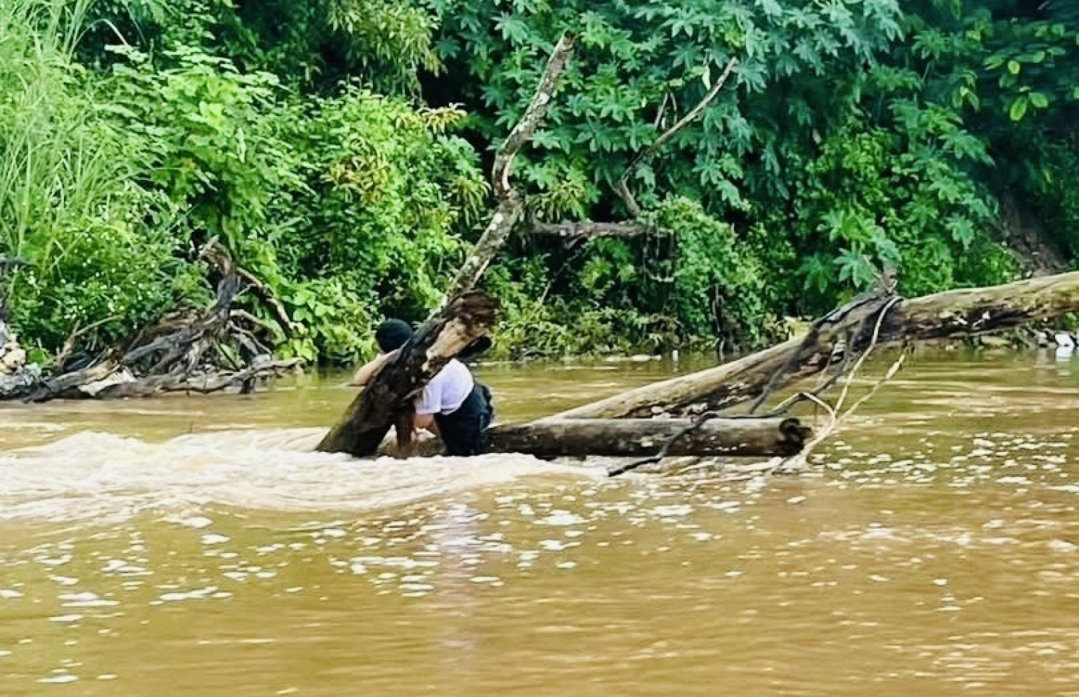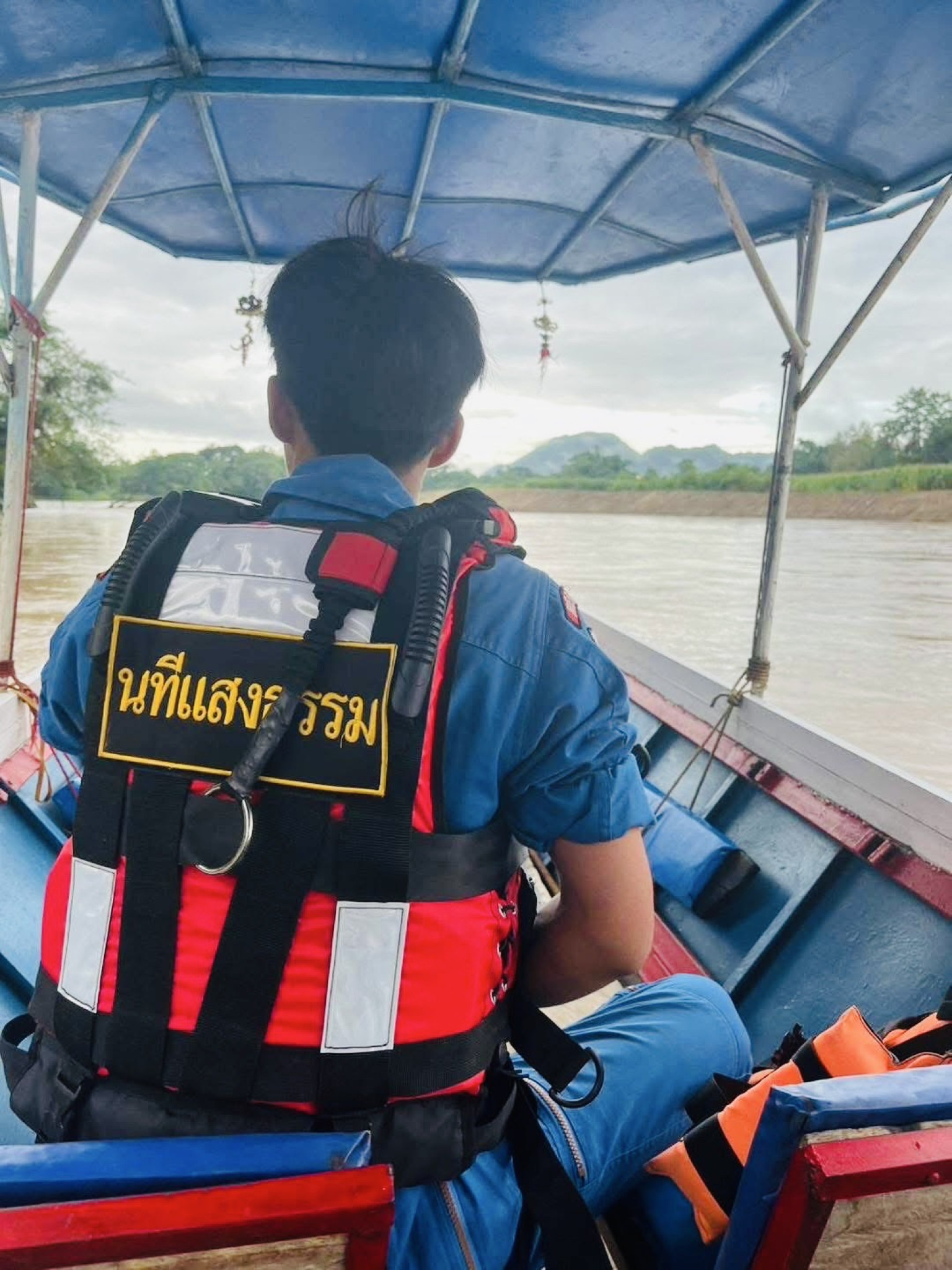 รุดช่วยนักเรียนขึ้นจากน้ำ หลังพลเมืองดีพบเกาะกิ่งไม้กลางแม่น้ำกก