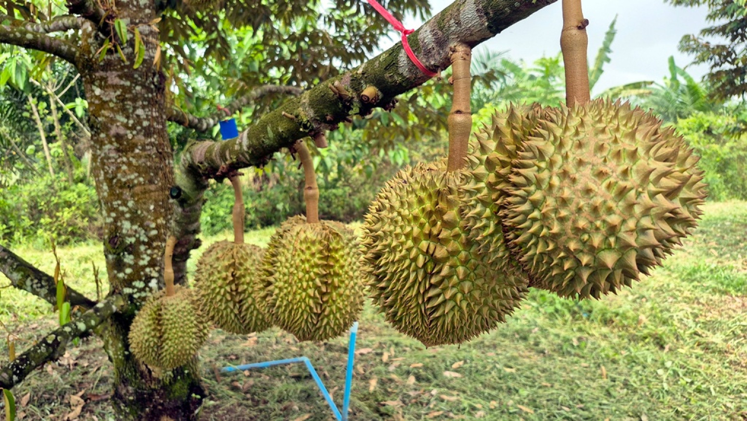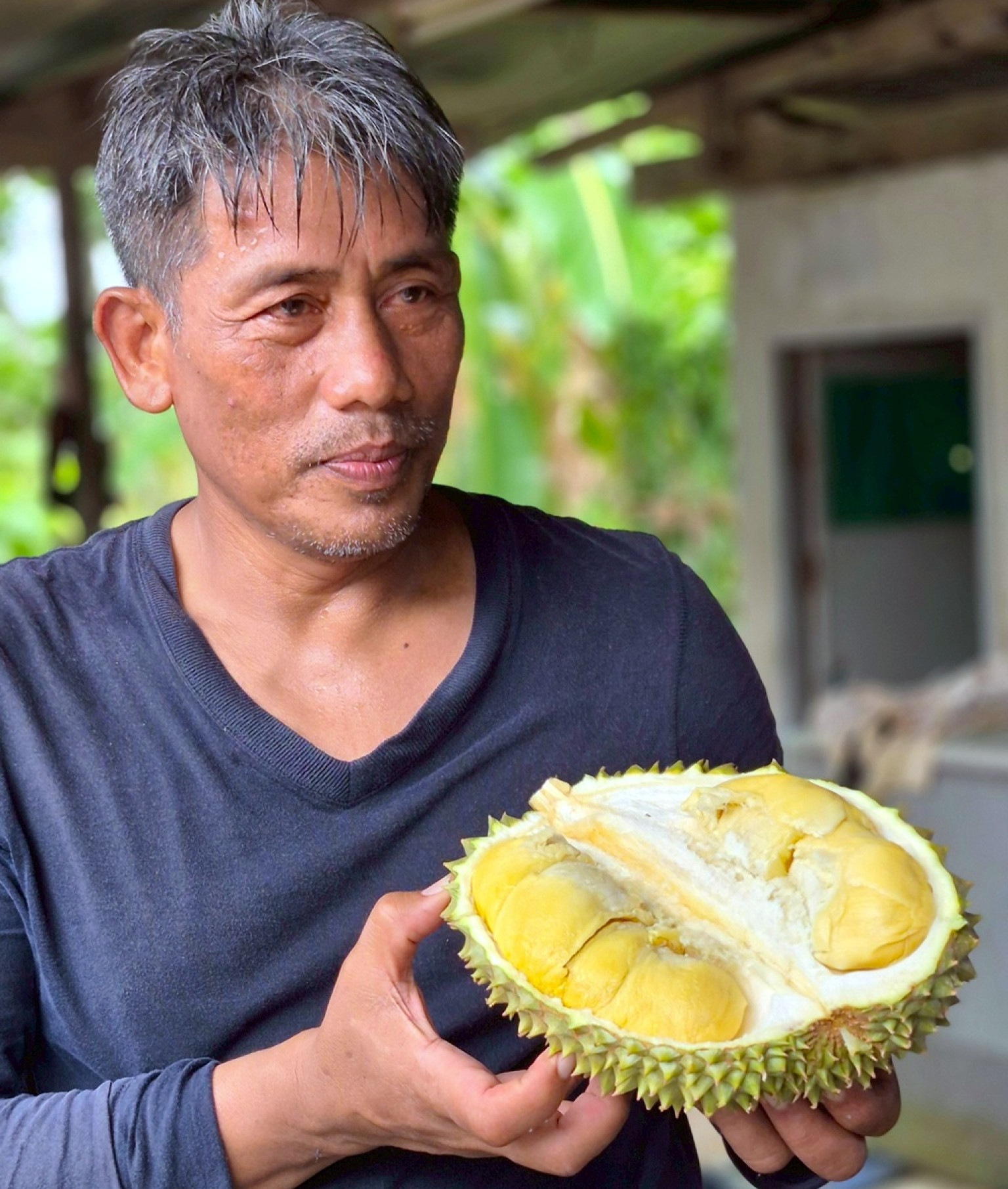 เขาเลือกปลูก “หมอนทองจันทบุรี” ซึ่งใช้เวลากว่า 8 ปีในการพัฒนาสวน ผลผลิตเพิ่มขึ้นทุกปี — ปีแรก 500 ลูกปีที่สอง 1,000 ลูก ปีล่าสุดคาดทะลุ 1,500 ลูก!