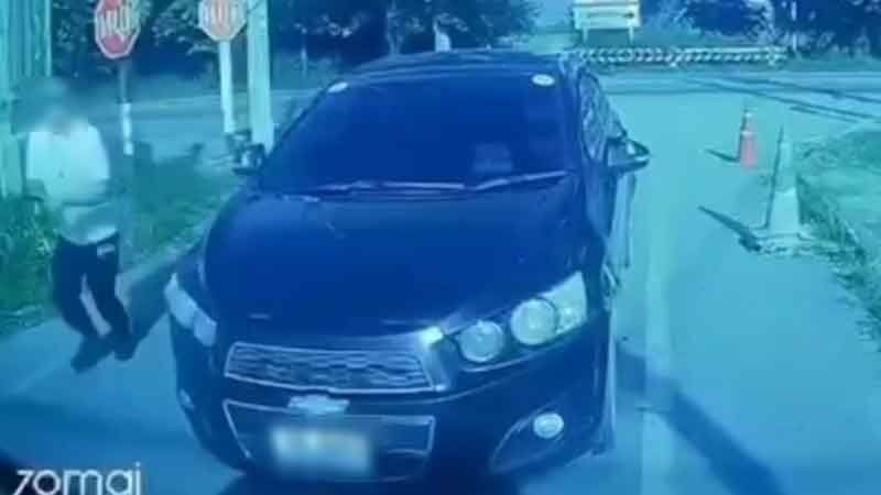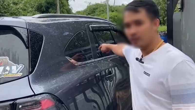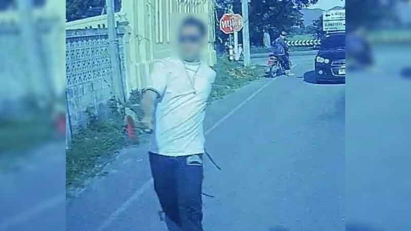 รถเก๋งได้เปิดไฟเลี้ยวชะลอรถจอดอยู่ริมถนนส่วนรถคันที่มีกล้องก็เปิดไฟเลี้ยว เลี้ยวเข้าซอยข้างวัดเนื่องจำนงค์ อ.บ้านบึง จ.ชลบุรี และชะลอแล้วก็จอดรถเช่นเดียวกัน จากนั้นรถเก๋งที่จอดอยู่ริมถนนและขับรถมาต่อท้ายคนขับเป็นชาย ได้ลงมาจากรถและในมือได้ถือขวานและมีดลงมาด้วยพร้อมกับวิ่งตรงมายังรถคันที่มีกล้อง และรถคันที่มีกล้องได้ครับเร่งเครื่องหนีไป โดยภาพจากกล้องหลังรถบันทึกเห็นได้ว่าคนขับรถเก๋งสีดำถืออาวุธมีดและขวานไล่ตาม