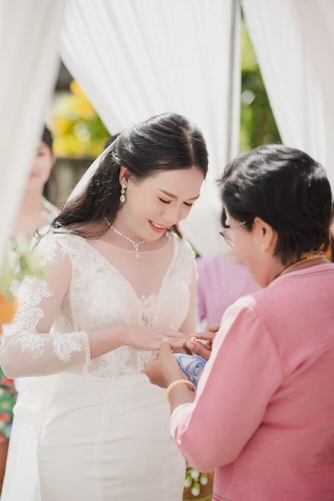 ส่วนที่ตัดสินใจอยากจะแต่งงาน เพราะมองว่าตัวเองอายุมากขึ้นแล้ว ครอบครัวของทั้ง 2 ฝ่ายก็ไม่ได้ติดใจอะไร จุดเริ่มต้นคือเราพูดกันเล่นๆ โดยแฟนพูดว่า “ถ้าฝั่งนู้นมาขอ เราจะเอายังไง” ขณะที่ฝั่งของตนก็พูดกับครอบครัว “ฝั่งโน้นแซวๆ มาว่ามาขอได้แล้ว เมื่อผู้ใหญ่รับรู้ก็เลยตัดสินใจแต่งงานกันเลย