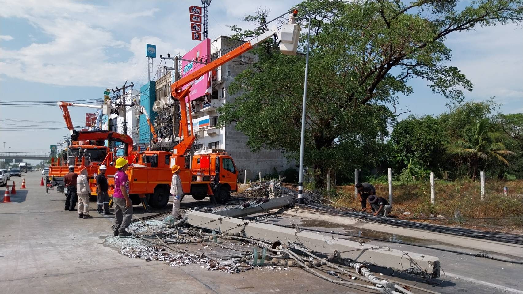 ต่อมาเจ้าหน้าที่การไฟฟ้าลาดหลุมแก้ว เดินทางมาที่เกิดเหตุ เพื่อดำเนินการแก้ไขอย่างเร่งด่วน พร้อมใช้รถยกเคลื่อนย้ายเสาที่ล้ม ออกจากผิวถนนและตัดสายไฟออก ให้รถสามารถผ่านสัญจรได้ตามปกติ และดำเนินการปักเสาสายไฟฟ้า เพื่อให้ใช้งานได้ต่อไป