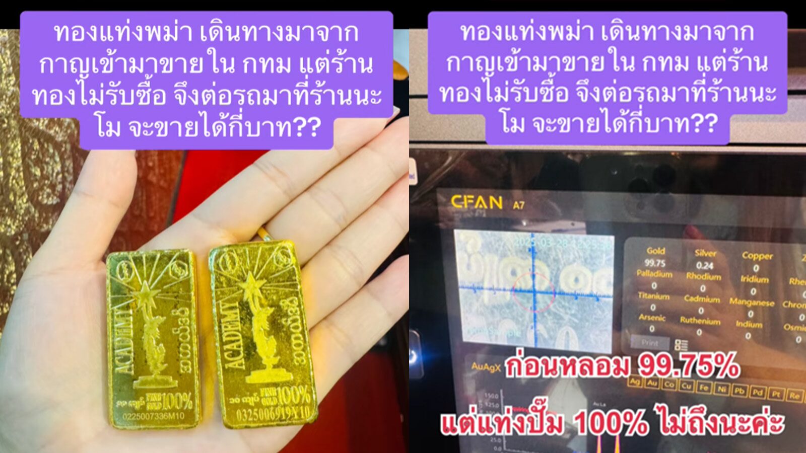 อ่านข่าวต้นฉบับได้ที่ : ลูกค้าหอบทองแท่งพม่ามาขาย แต่ไม่มีใครซื้อ ก่อนเจอร้านใจดี ตีราคาสุดจึ้ง