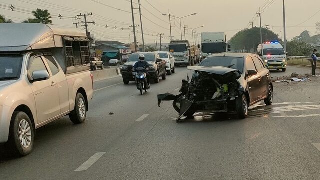 เมื่อเวลา 07.45 น. วันที่ 23 ก.พ.2568 เจ้าหน้าที่ตำรวจ สภ.ธัญบุรี รับแจ้งเหตุรถเก๋งเฉี่ยวชนกับการ์ดเรลริมถนนรังสิต-นครนายก คลอง 12 (ฝั่งขาเข้า) ม.3 ต.บึงน้ำรักษ์ อ.ธัญบุรี จ.ปทุมธานี จึงรุดไปตรวจสอบพร้อมอาสามูลนิธิร่วมกตัญญู และศูนย์กู้ชีพเทศบาลเมืองสนั่นรักษ์