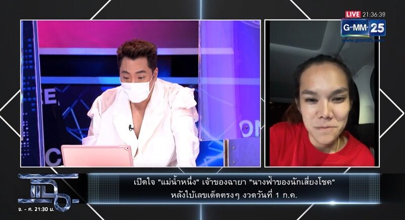 แม่น้ำหนึ่ง นักใบ้หวยชื่อดัง ให้หวยแม่นมาเป็น 10 งวด ล่าสุด แม่น้ำหนึ่ง หรือ ภิรดา ธนโชติจินดา รายการแฉ โดยมดดำ คชาภา วิดีโอคอลเปิดใจแม่น้ำหนึ่ง ถามเรื่องธูปที่จุดให้หวยแม่นเอามาจากไหน แม่น้ำหนึ่งบอกว่า สั่งซื้อจากโรงงาน มีเป็นกอง หยิบขึ้นมาแล้วจุด