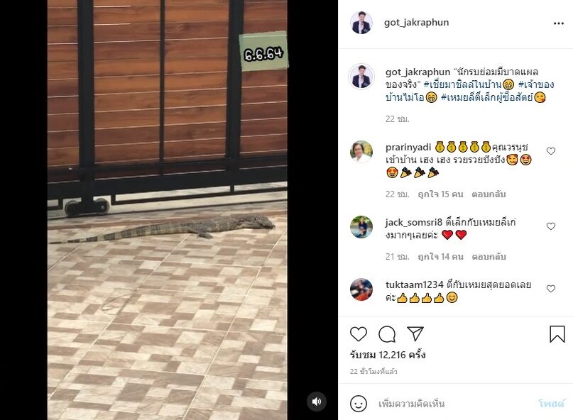 ระทึกเหี้ยดุบุกเข้าบ้านกัดเหวอะ เจ้าชายลูกทุ่งก๊อท จักรพันธ์ โพสต์คลิปตัวเงินตัวทอง บุกเข้าบ้านเมื่อวันที่ 6 มิ.ย. 64 เจอเจ้าของบ้านอย่าง เหมยลี่และตี๋เล็กบุกใส่จนได้แผล