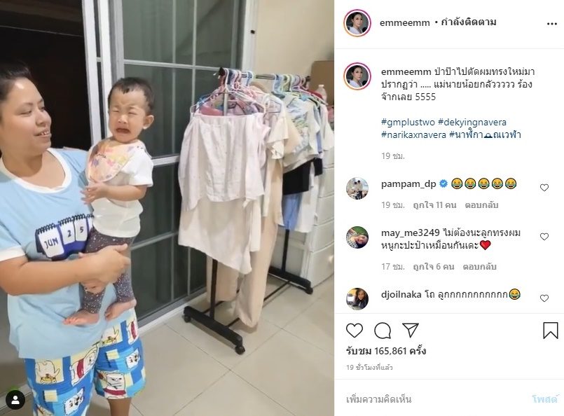 “ป่าป๊าไปตัดผมทรงใหม่มา ปรากฏว่า ….. แม่นายน้อยกลัววววว ร้องจ๊ากเลย 5555 #gmplustwo #dekyingnavera #narikaxnavera #นาฬิกาณเวฬา”