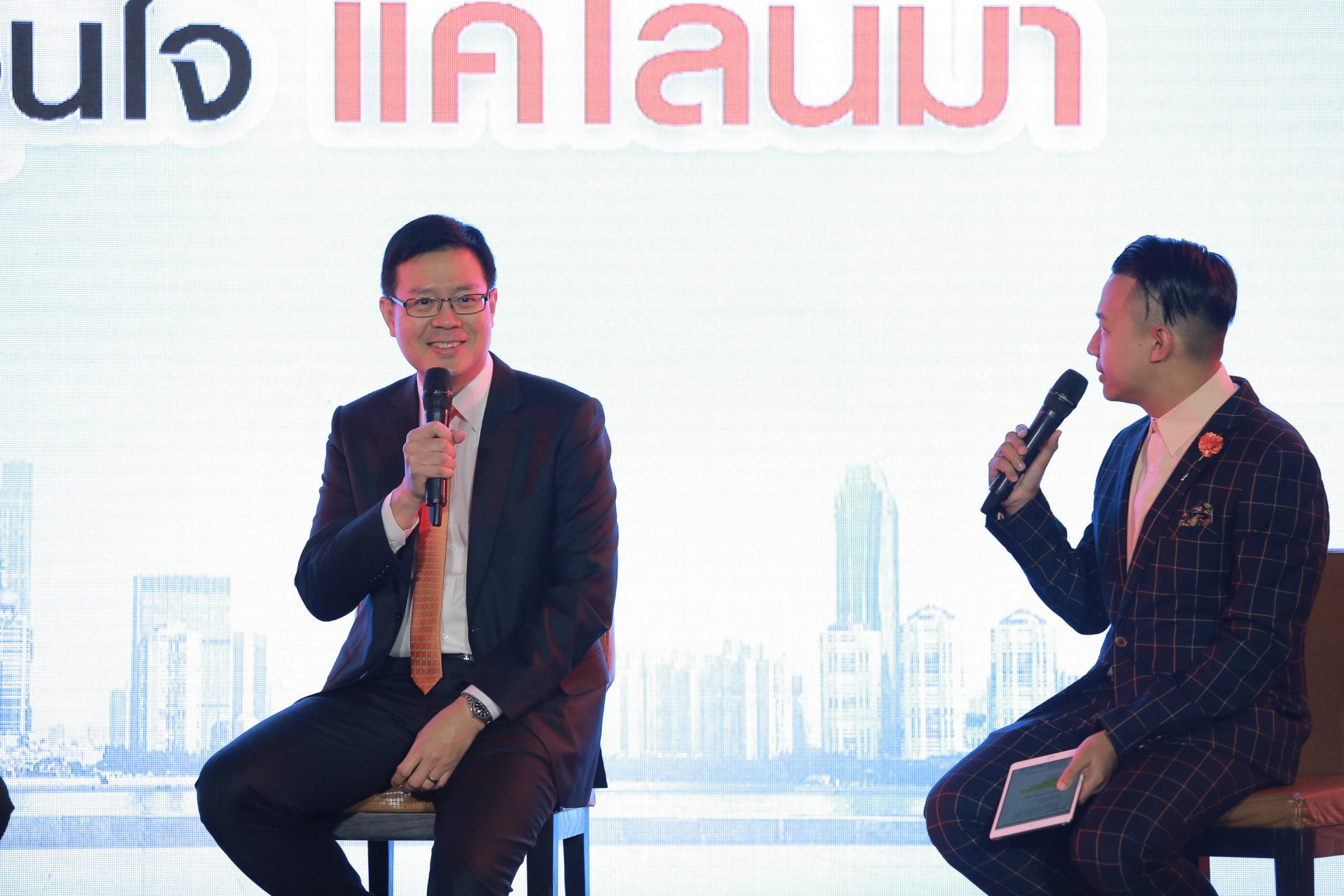 พีระพัฒน์ เมฆสิงห์วี กรรมการผู้จัดการ บริษัท ธนชาตประกันภัย จำกัด (มหาชน) และ หนุ่ย พงศ์สุข หิรัญพฤกษ์ ผู้ดำเนินรายการ