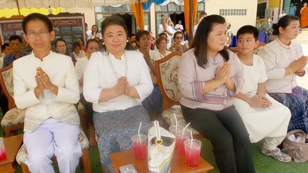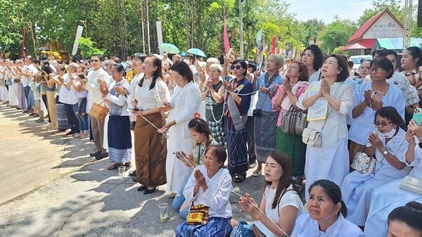 ประกอบพิธียกยอดฉัตรทองคำประดิษฐานบนยอดเจดีย์พระธาตุแสงนคร มีพุทธศาสนิกชนนุ่งขาวห่มขาว มาร่วมประกอบพิธีในวันวิสาขบูชา จำนวนกว่า 1,000 คน