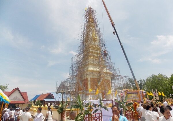 สำหรับยอดเจดีย์เป็นทองคำน้ำหนัก 71 บาทฝังเพชรไม่ทราบมูลค่ารวม 4 ล้านบาท โดยมี นายวีระ ฤกษ์วานิชย์กุล รอง ผจว.สกลนคร และภรรยา เป็นเจ้าภาพอุปถัมภ์