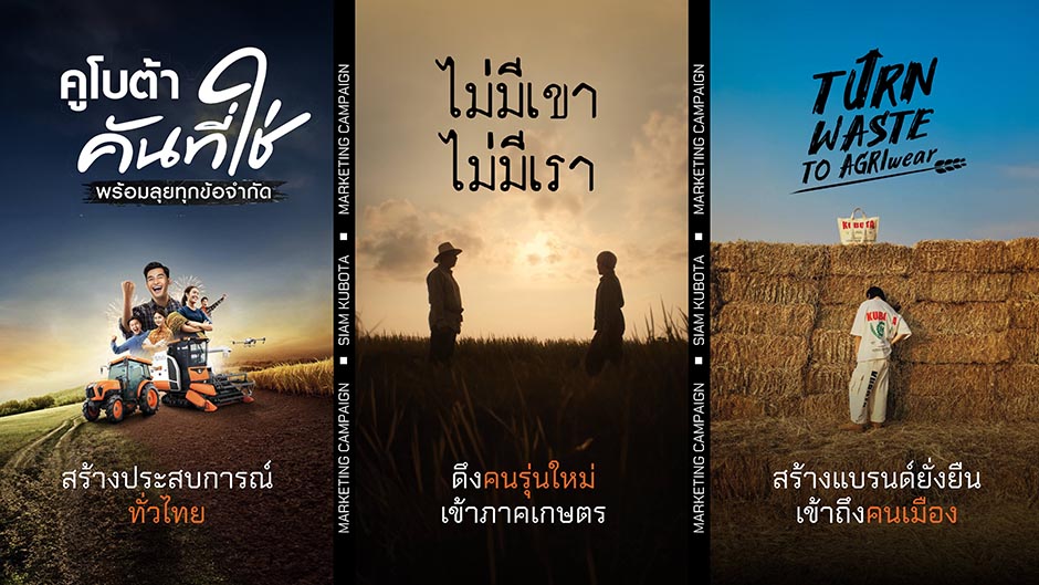 อีกกลยุทธ์ในการเข้าถึงคนรุ่นใหม่คือการสื่อสารผ่านแคมเปญการตลาด ได้แก่ Music Marketing, แคมเปญ “No Farmer, No Us ไม่มีเขา ไม่มีเรา”เพื่อแสดงให้เห็นถึงความสำคัญของการทำการเกษตร ที่มียอดวิวกว่า 50 ล้านวิว และอีกแคมเปญก็คือ Turn waste to Agri-Wear โดยร่วมมือกับ GREYHOUND ORIGINALต่อยอด “ฟางข้าว” เศษวัสดุเหลือใช้ทางการเกษตรมา Upcycling เป็นเครื่องแต่งกายสไตล์สตรีทแฟชั่น เพื่อลดผลกระทบจากการเผา และทำให้แบรนด์คูโบต้าเข้าถึงกลุ่มคนเมืองและคนรุ่นใหม่มากยิ่งขึ้น
