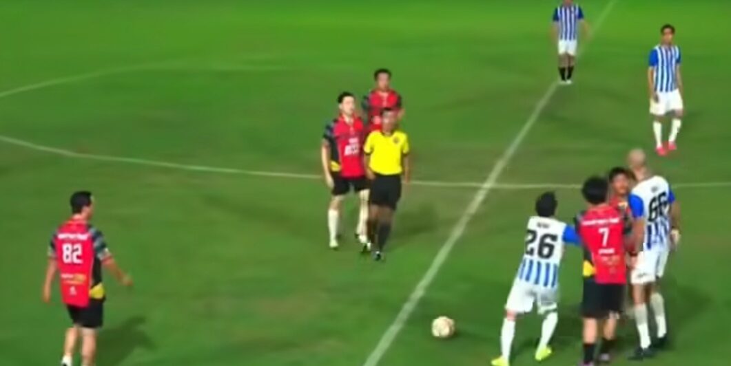 รถถัง เดือด ฟุตบอลกระชับมิตร ผู้เล่นต่างชาติเล่นแรง กระแทก บอย ท่าพระจันทร์ กระเด็น ปรี่เอาเรื่อง นักกีฬาทั้ง 2 ทีม ต้องห้ามกันวุ่น (คลิป)