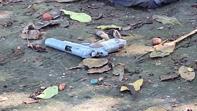 ที่เกิดเหตุพบศพชายนายสิงห์ คำดี อายุ 40 ปี อาชีพเก็บของเก่า ชาวลาว สภาพศพนอนหงายสวมเสื้อสีน้ำเงิน กางเกงขาสั้นสีดำ มีบาดแผลถูกยิงที่หน้าท้อง ถัดจากมือซ้าย 1 เมตรพบมีดดาบสปาต้ายาว 2 ฟุต ใกล้มือขวาพบอาวุธปืนไม่ทราบชนิดตกอยู่