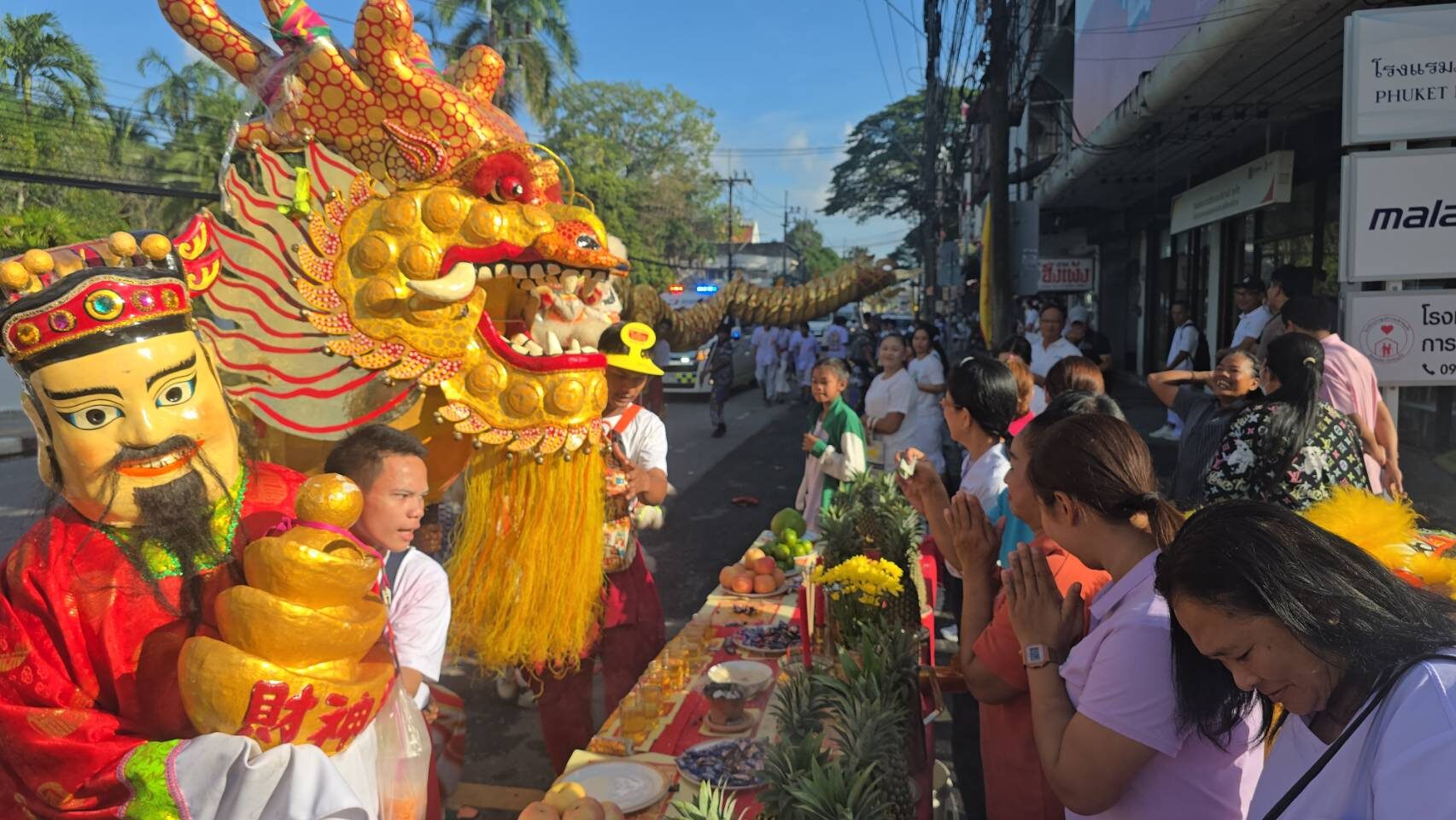 โดยตลอดเส้นทางที่ขบวนพระแห่ผ่านมีประชาชนชาวภูเก็ตและนักท่องเที่ยวทั้งชาวไทยและต่างชาติต่างใส่ชุดขาวมารอรับองค์พระเป็นจำนวนมาก และพี่น้องประชาชนที่มีอาคารและบ้านเรือนที่ขบวนพระแห่ผ่าน จัดตั้งโต๊ะบูชารับเสด็จขบวนพระ และมีการจุดประทัดต้อนรับ เพื่อความเป็นสิริมงคลแก่ตนเองและครอบครัว