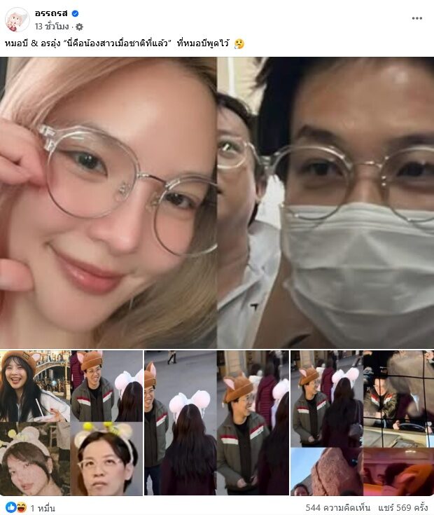 แถม เพจ อรรถรส ล่าสุดก็ออกมาโพสต์ภาพของทั้งคู่ที่โพสต์ทริปญี่ปุ่นเหมือนกัน แคปชั่นว่า “หมอบี & อรอุ๋ง “นี่คือน้องสาวเมื่อชาติที่แล้ว” ที่หมอบีพูดไว้ ”