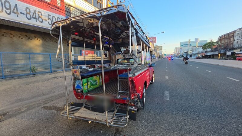 พ่อค้าขับกระบะ หลับใน พุ่งเสยท้ายสองแถวเต็มแรง นักเรียน-ชาวบ้านตกรถเจ็บ14