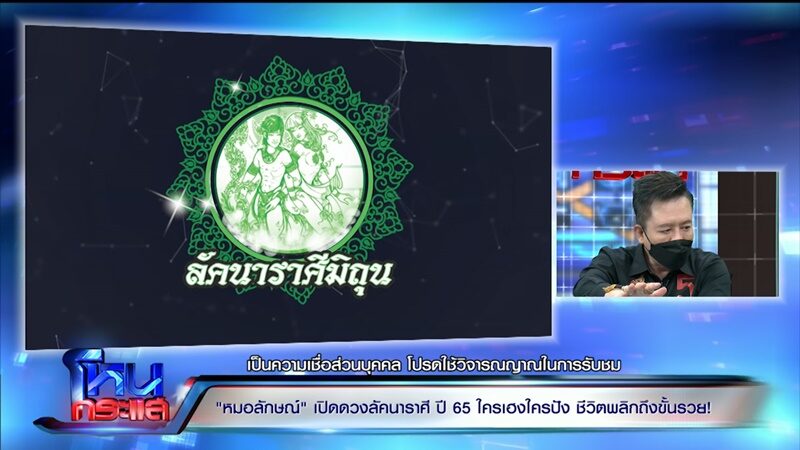 “ปี 65 เป็นปีแห่งการพลิกฟื้นชะตาชีวิตวิบากกรรม เริ่มต้นชีวิตใหม่ จะมีความรุ่งโรจน์สำเร็จ ฟันธง เมื่อปี 62 63 64 ที่ผ่านมา ชาวราศีมิถุนเหมือนถูกบ้องหู ข้างบนก็เหมือนหินหล่นใส่ ไม่ตายแต่ทรมาน คนเกิดมิถุนทรมานมาตลอด ฉะนั้นปี 65 พลิกฟื้น สังเกตมั้ย เมษ พฤษภ มิถุน เหมือนดวงเปลี่ยน มันพลิกฟื้นจากร้ายกลายดี ถามว่าคนดูจะเชื่อมั้ย ไม่ต้องเชื่อหรอก แต่ข้อแรกดูก่อนว่าราศีมิถุน 62 63 64 มันแย่มั้ย ลองกลับไปดูตัวเอง ถ้ามันดีแสดงว่าทายผิดก็ไม่ต้องดูต่อ แต่ถ้าตรงก็ให้เชื่อมั่นไว้ ว่าปี 65 จะดี มิถุนเต็มสิบให้ 8.7 พลิกจากร้ายกลายดี จะมีโอกาสเปลี่ยนแปลงอะไรหลายอย่าง มันจะเหวี่ยงๆ อยู่บ้าง ดีร้ายสลับช่วงต้นปี แต่พอพ้น 8 เม.ย. ไปทุกอย่างดีมาก อันนี้คือสถิติปลายเปิด เรากำลังให้ยาชุด แต่ถ้าดูละเอียดต้องละเอียดต้องแอดมิท ต้องดูให้มากกว่านี้”