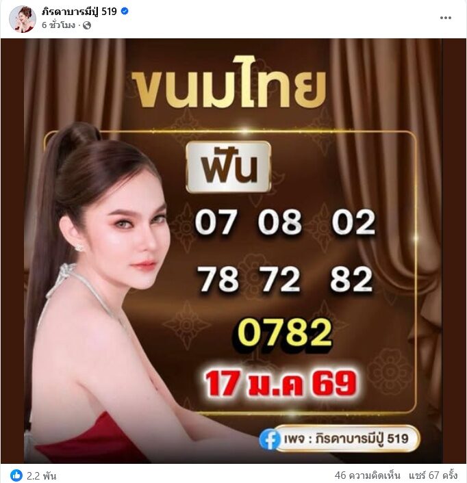 หลังจากผลสลากกินแบ่งรัฐบาลงวดวันที่ 17 ม.ค.69 ประกาศออกมา แม่น้ำหนึ่ง ภิรดา ซึ่งเมื่อเช้าก็โพสต์ย้ำเลขเด็ด ขนมไทย ให้แฟนๆไว้