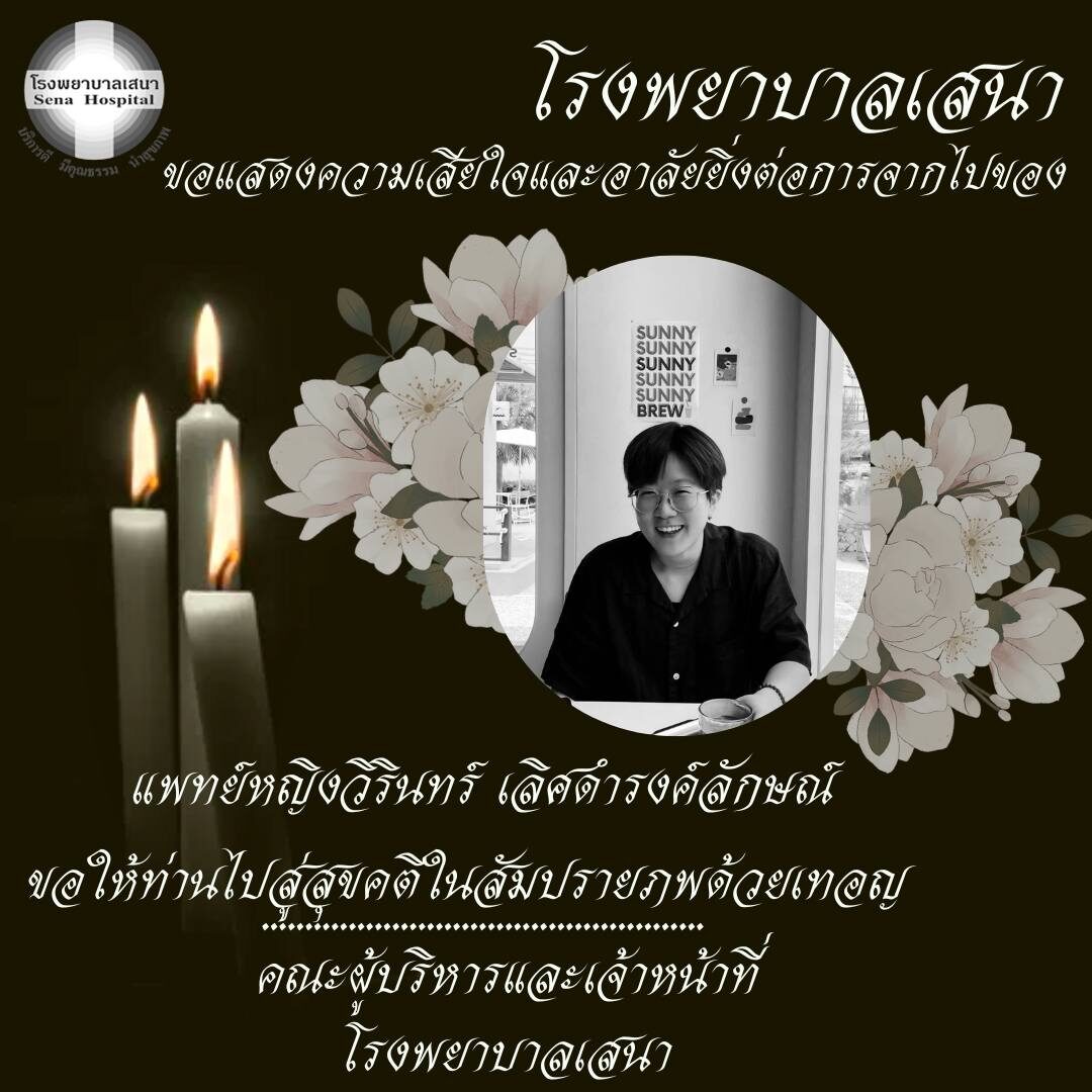 แพทย์ในดวงใจของพวกเราชาวเสนา ขอแสดงความเสียใจ และร่วมไว้อาลัย ต่อการจากไปของ แพทย์หญิงวิรินทร์ เลิศดำรงลักษณ์