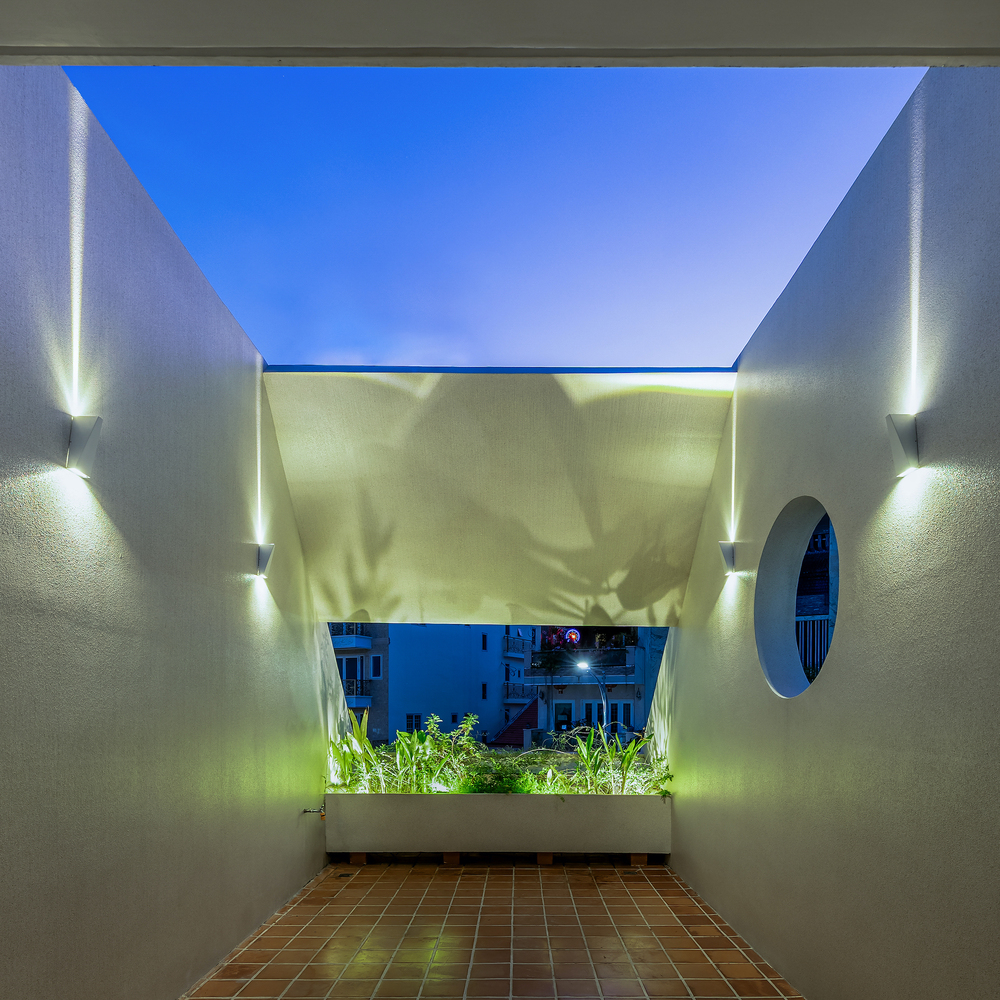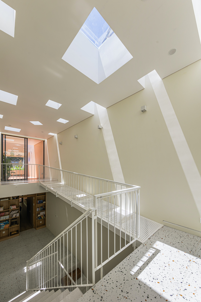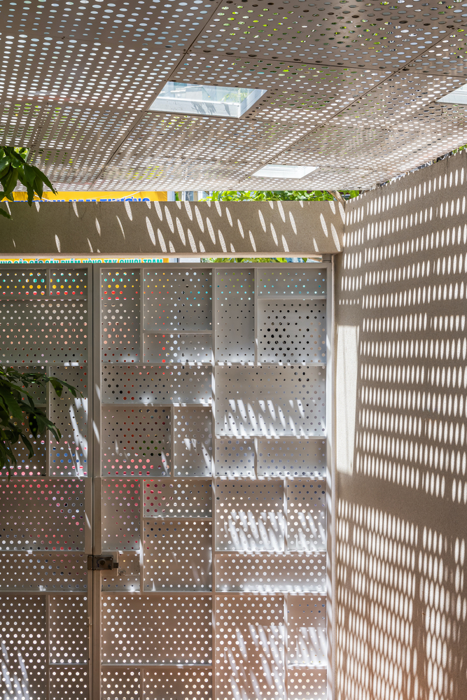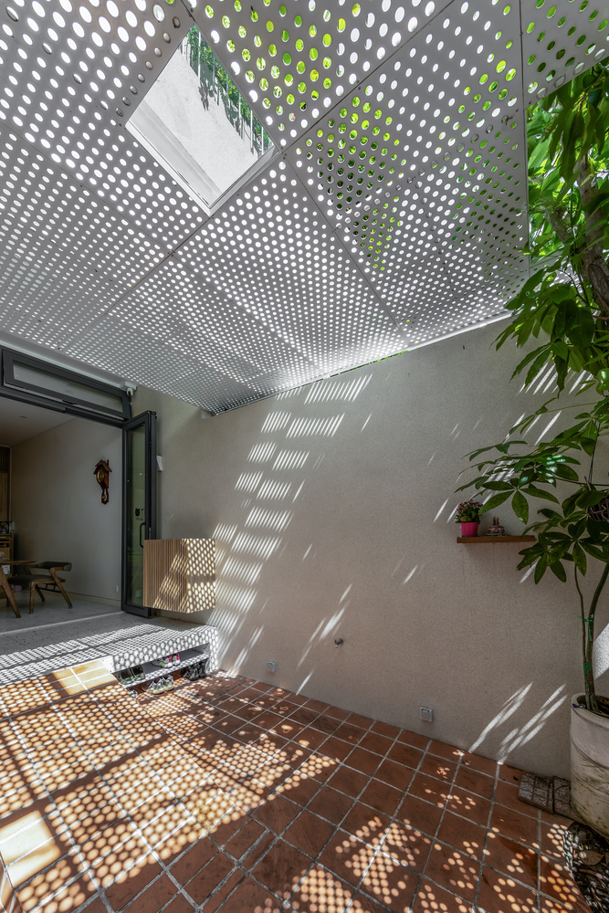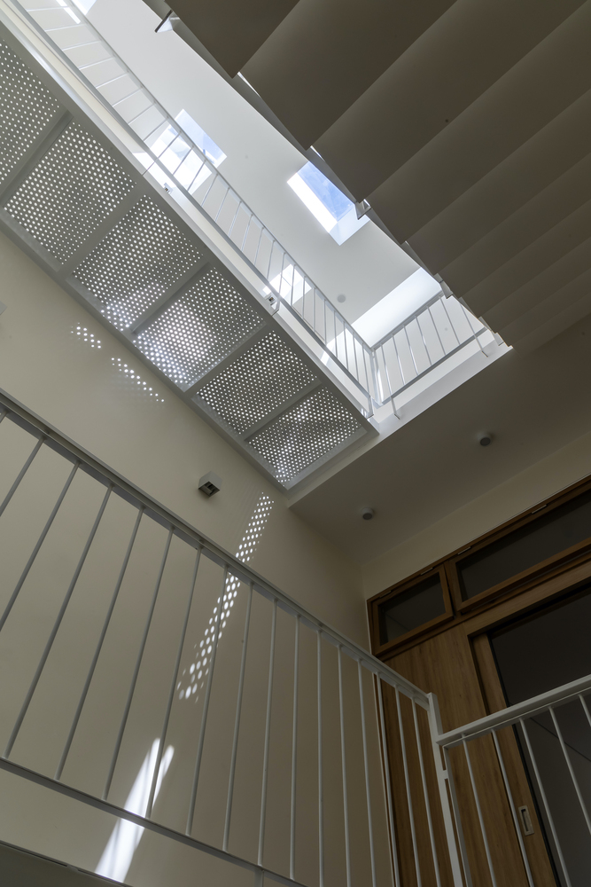 การจัดการแสงและการระบายอากาศ ช่องแสงกลางบ้านถูกออกแบบให้แบ่งเป็นส่วนย่อย เพื่อให้แสงสว่างและระบายอากาศได้ดี แต่ลดการสะสมความร้อนจากกระจก การใช้แผ่นเหล็กเจาะรูในส่วนทางสัญจรยังช่วยให้แสงธรรมชาติกระจายตัวได้ดียิ่งขึ้น