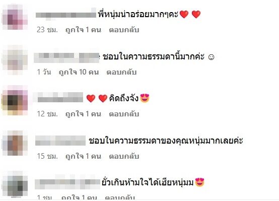 “ชอบในความธรรมดาของคุณหนุ่มมากเลยค่ะ , ชอบในความธรรมดานี้มากค่ะ , ใช่ค่ะ ชีวิตเรียบง่ายอยู่สบายและมีความสุขที่สุด , เป็นคนน่ารัก ติดดิน ชิลๆ หลายคน น่าเอาเยี่ยงอย่าง เป็นต้น”