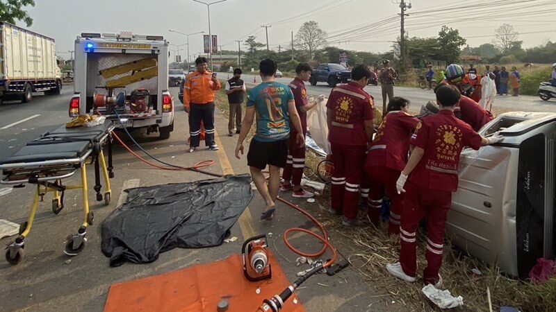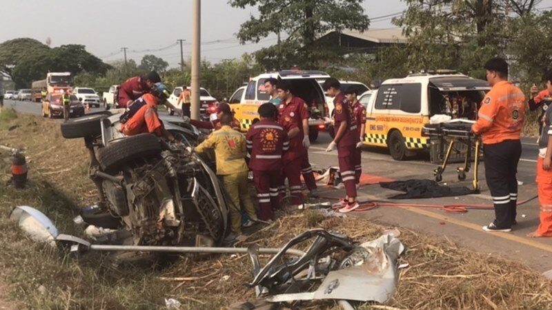 โค้งดังร้อยศพ! ผัวขับทั้งคืนพาเมียมาเยี่ยมลูก ตะวันขึ้นไม่ถึง 8 โมงลงข้างทางชนเสาไฟดับคาซาก