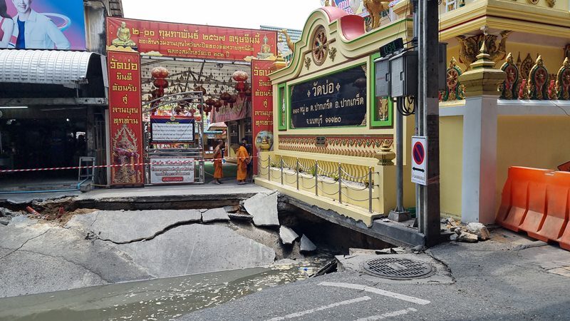 - เปิดสาเหตุถนนยุบ พบเป็นหลุมลึก 2 เมตร เป็นบ่อร้อยสายไฟ วัดเสียหาย 5 ล้าน