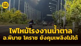 ไฟไหม้ รง.น้ำตาล อ.พิมาย จ.นครราชสีมา จนท.เร่งคุมเพลิง
